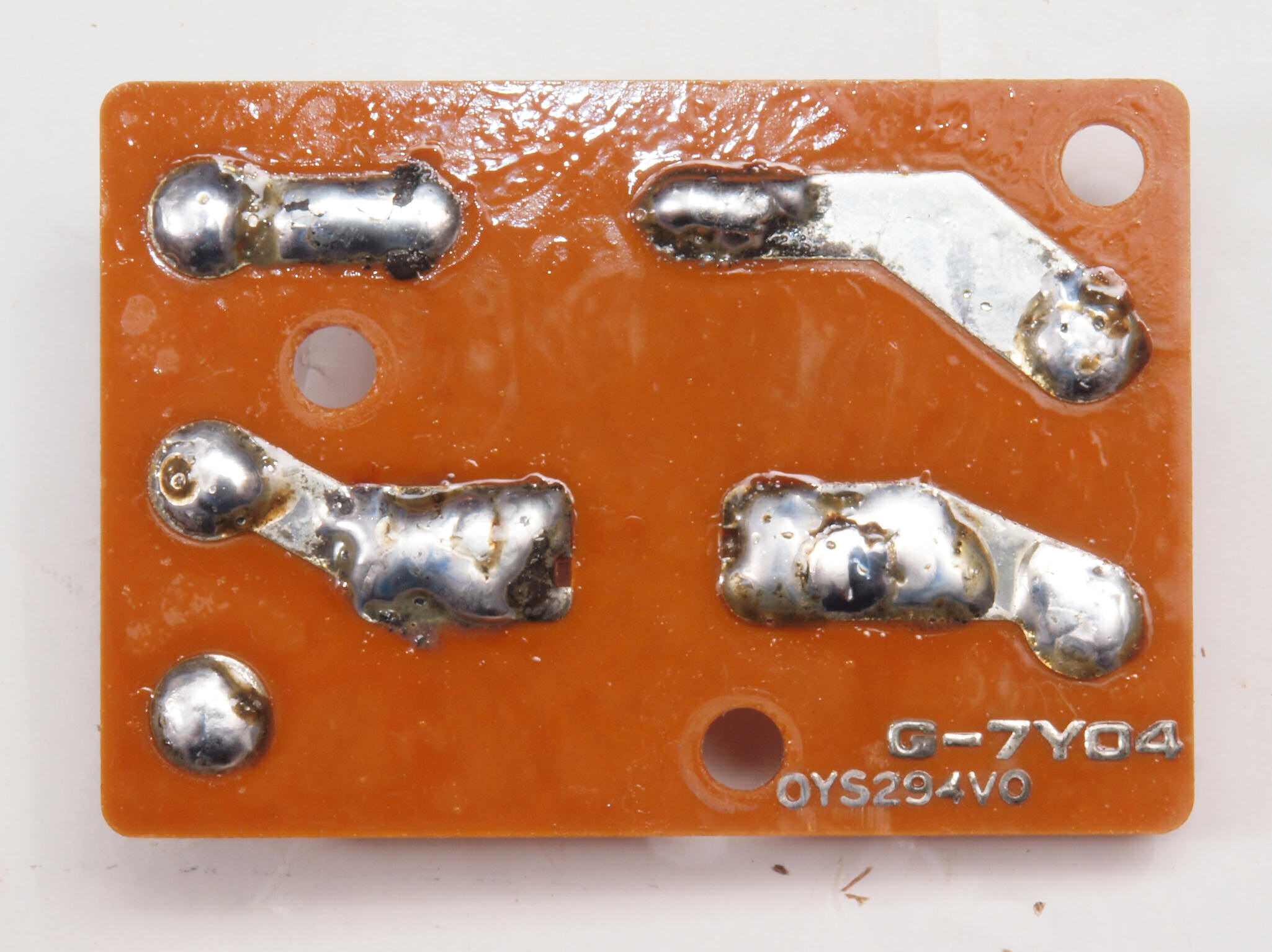 C72. 修理中 ヒューズ取付圧縮板表。 圧縮板にボンドを塗って固めている、ヒューズ取付圧縮板表。 | ||||||||||||