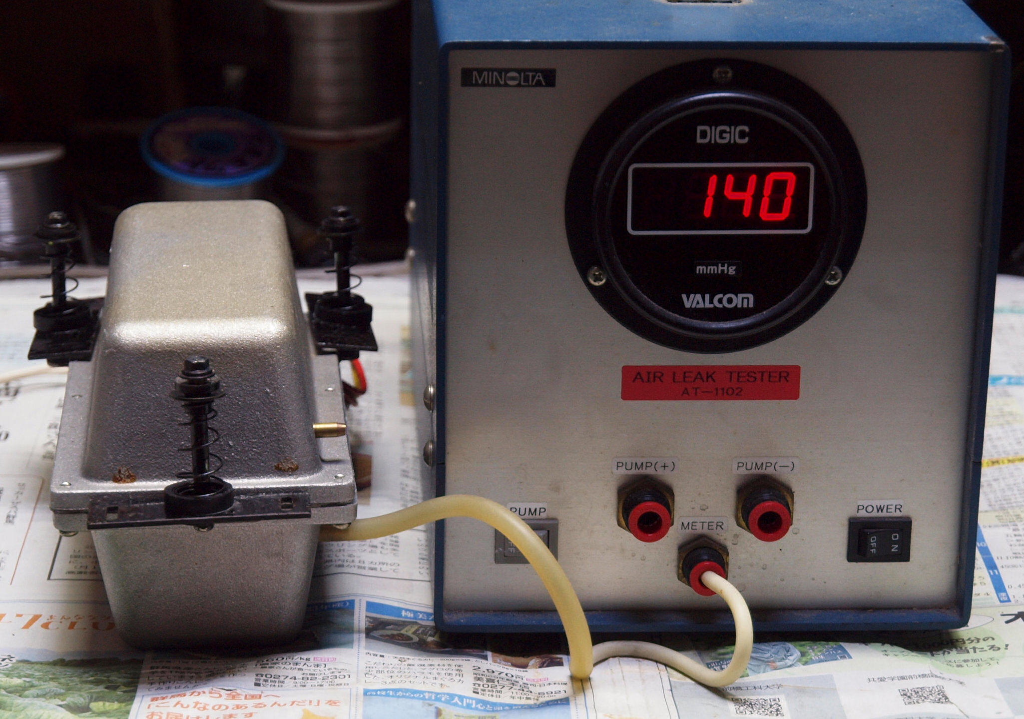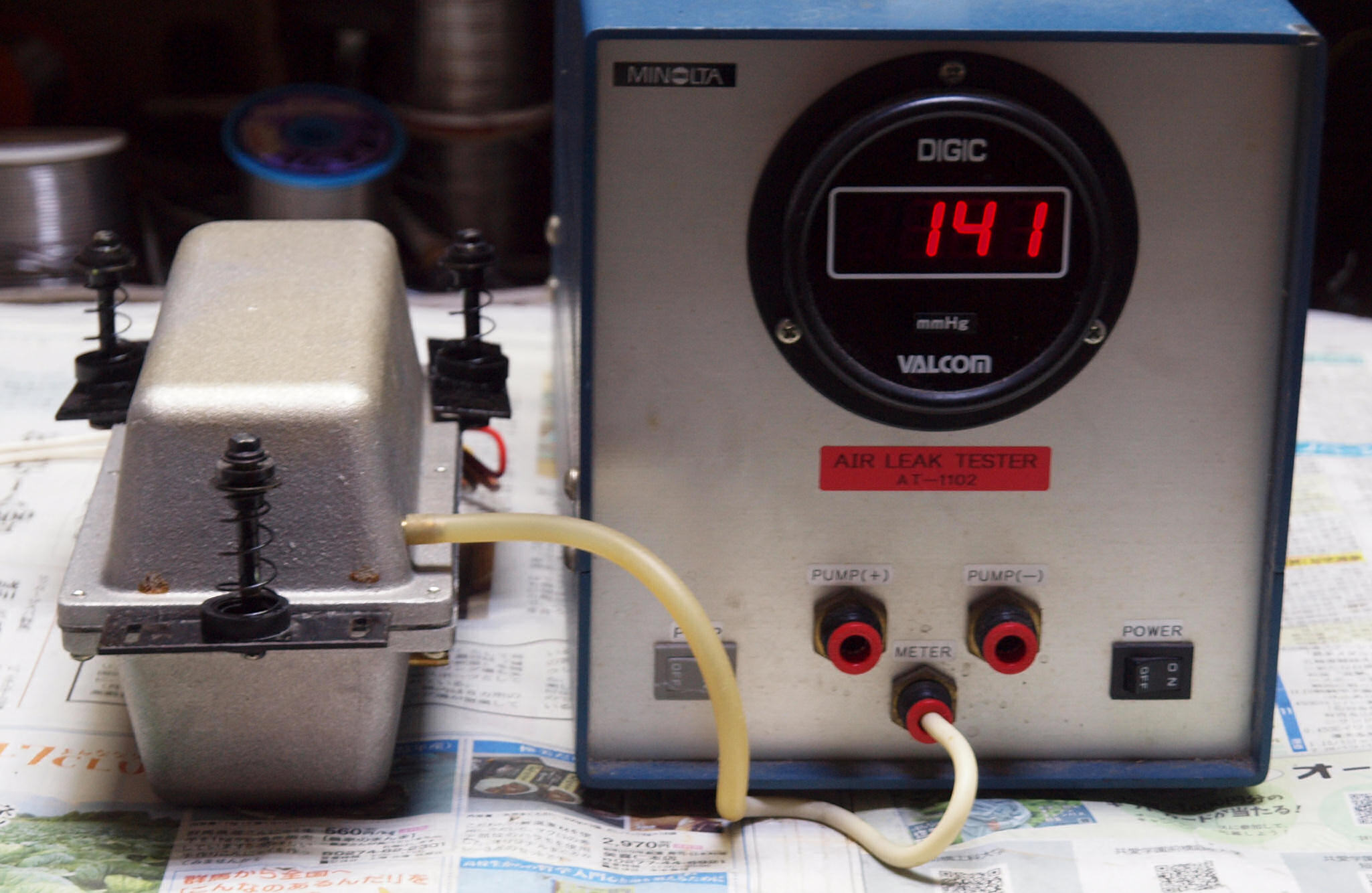S2. 測定中 「B=吸い込みポンプ」の圧力測定。低い、50〜80位欲しい。