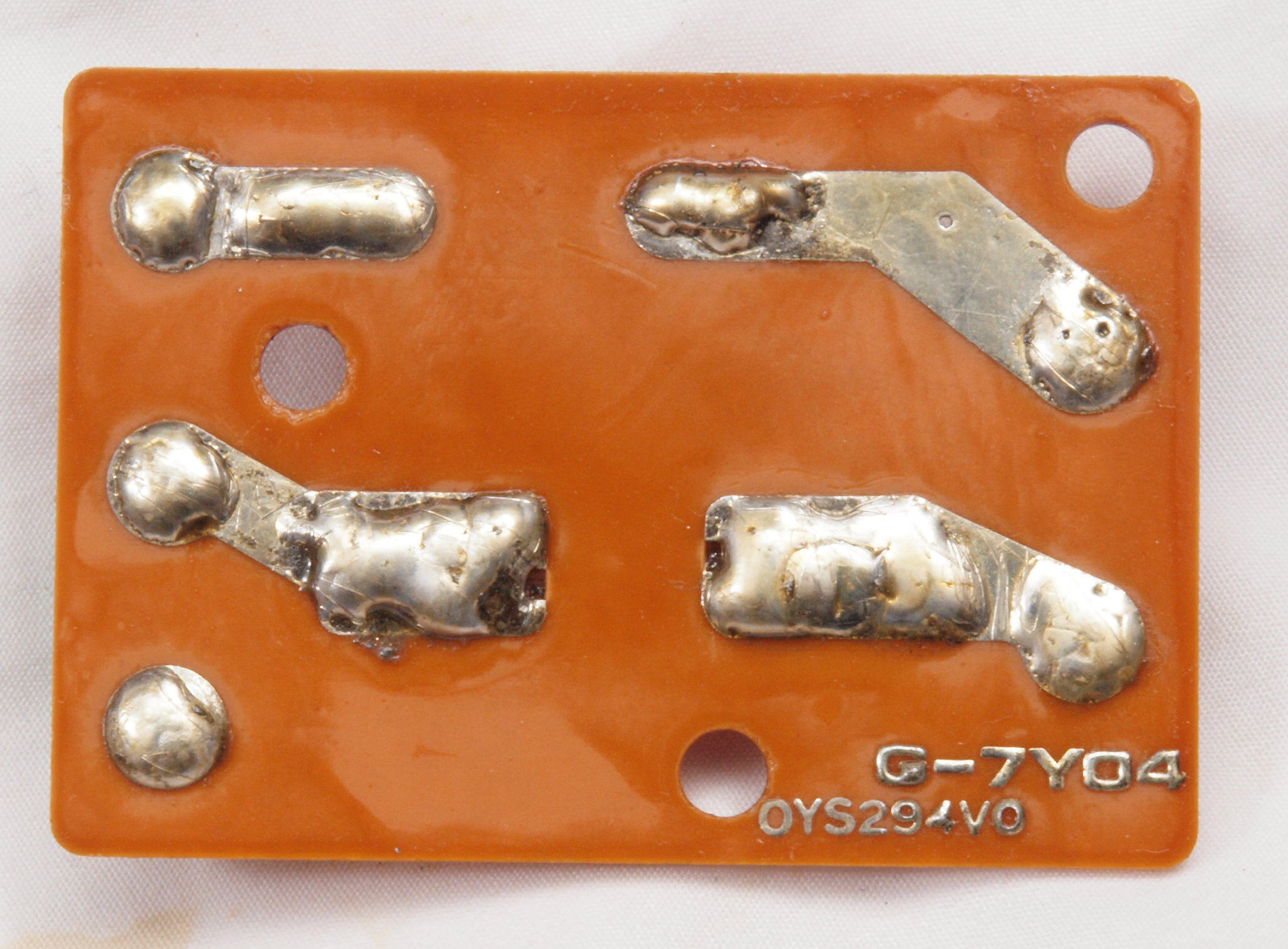 C72. 修理中 ヒューズ取付圧縮板表。 圧縮板にボンドを塗って固めている、ヒューズ取付圧縮板表。