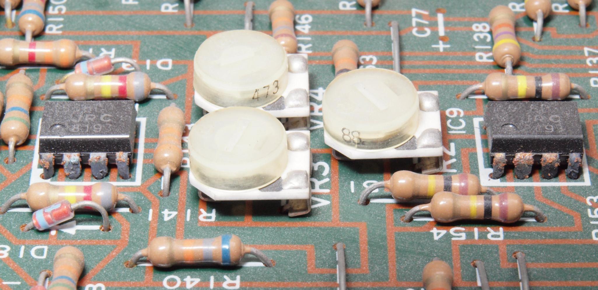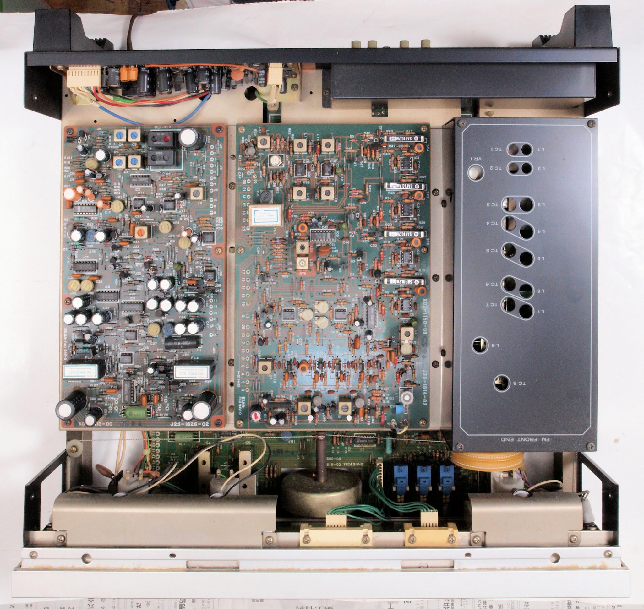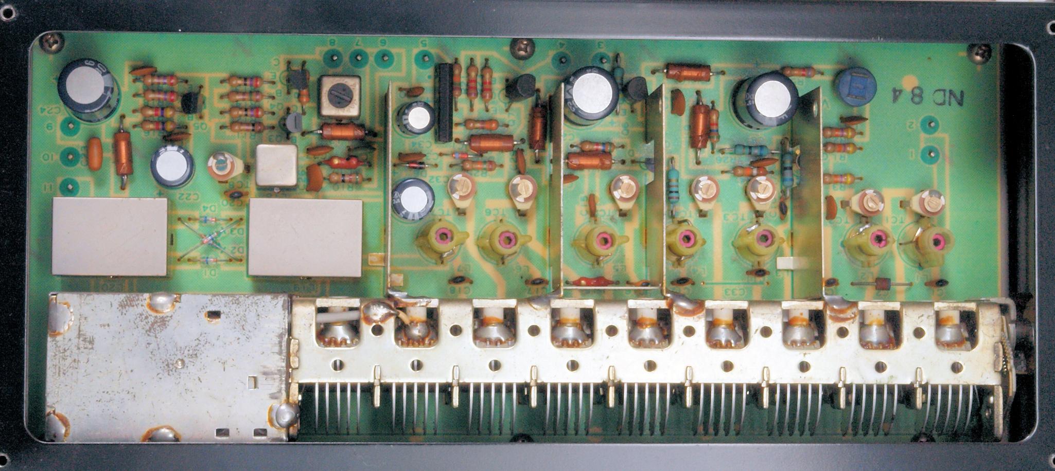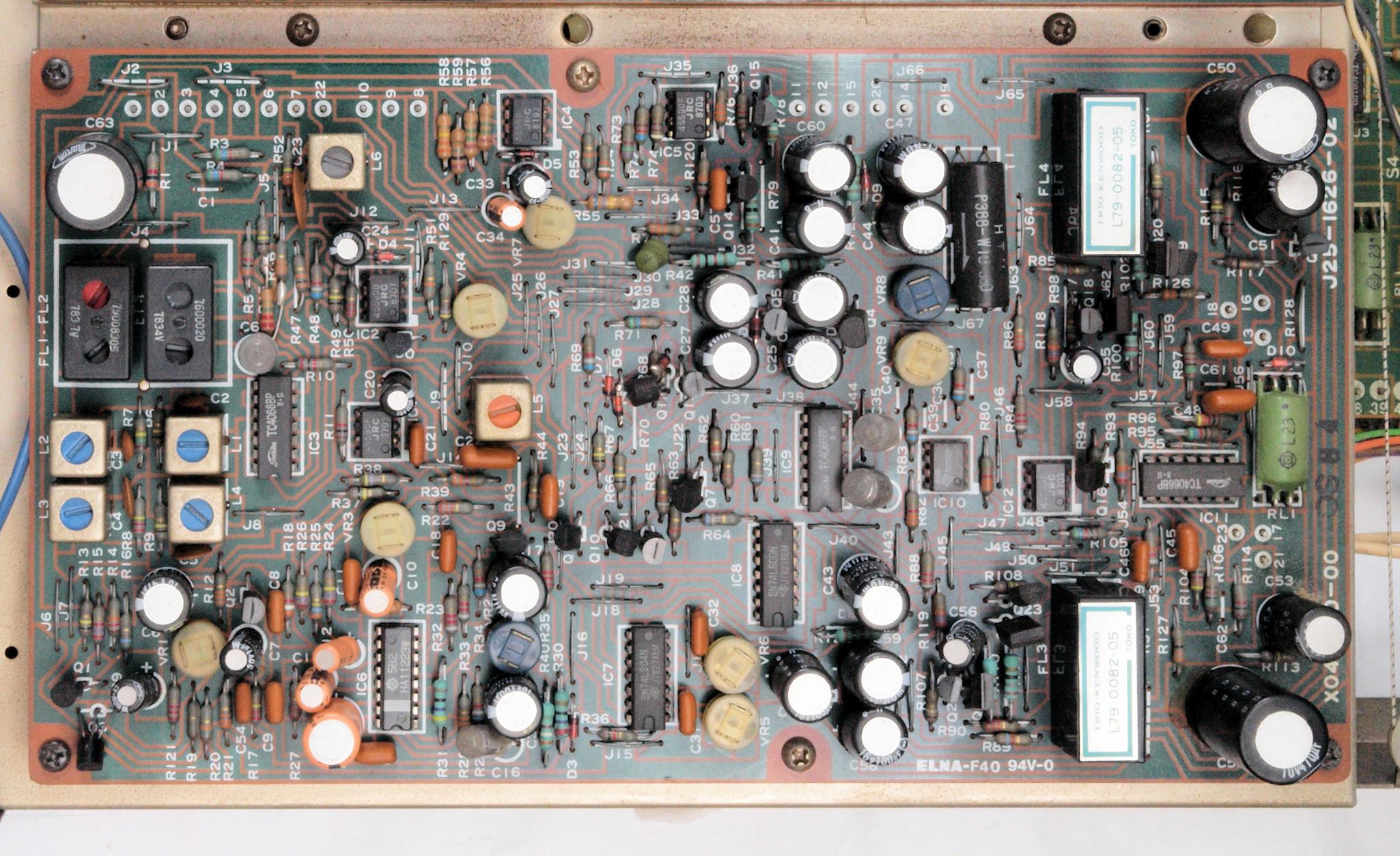 | C62. 修理後 DDL基板。 半固定VR3個、電解コンデンサー30個、OP_AMP6個、IC7個、足黒TR(トランジスター)3個交換 | ||||||||||||||||||||||||||||||||||||||||||||||||