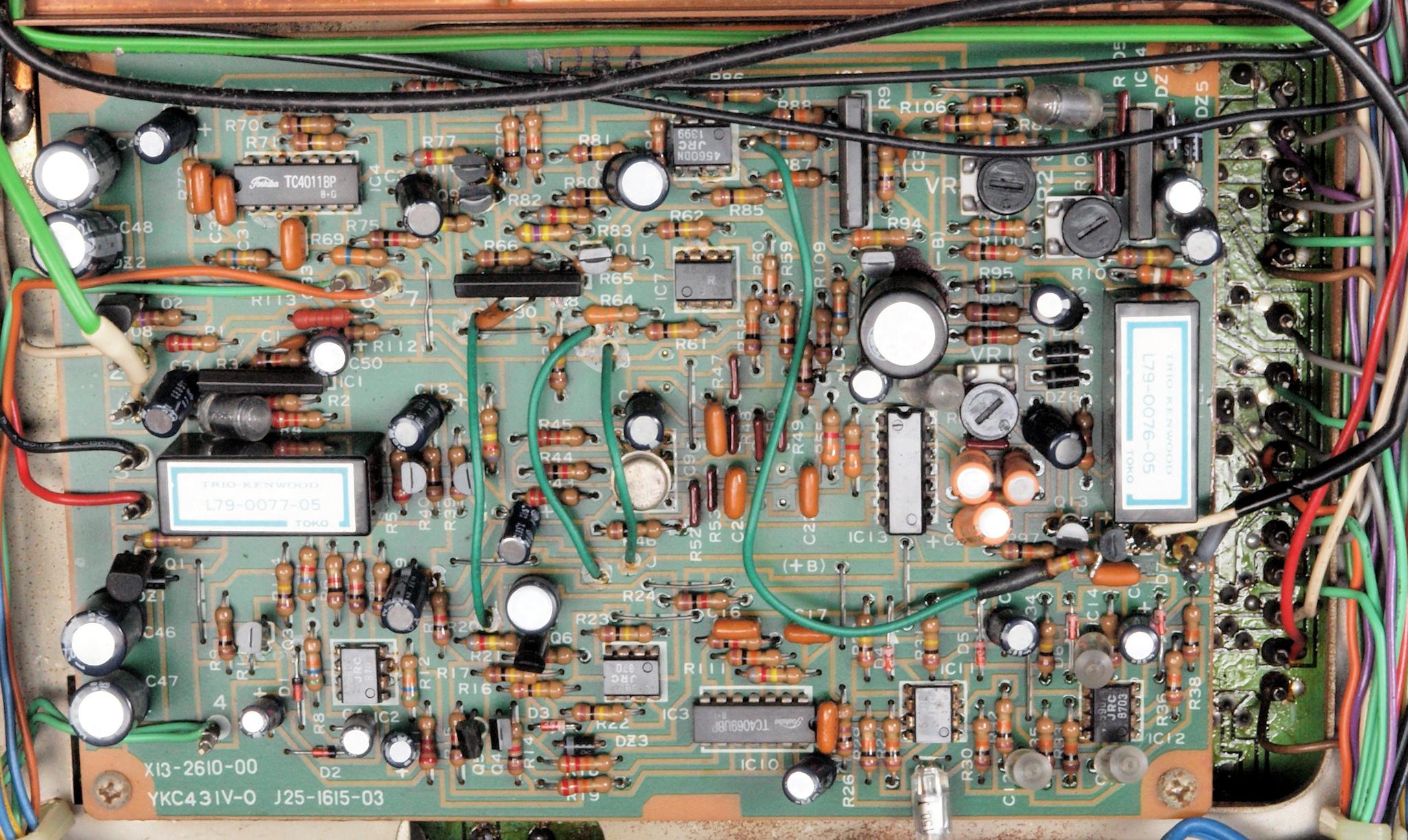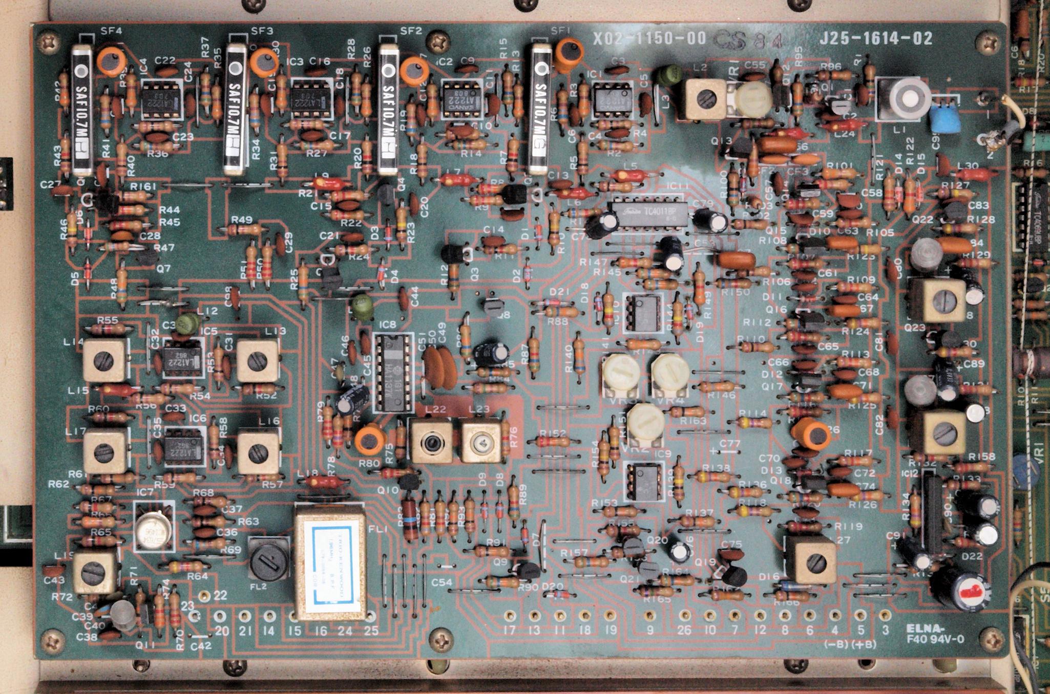 | C42. 修理後 IF基板。 半固定VR3個、電解コンデンサー14個、IC10個、OP_AMP1個、TR(トランジスター)9個交換 | ||||||||||||||||||||||||||||||||||||||||||||||||