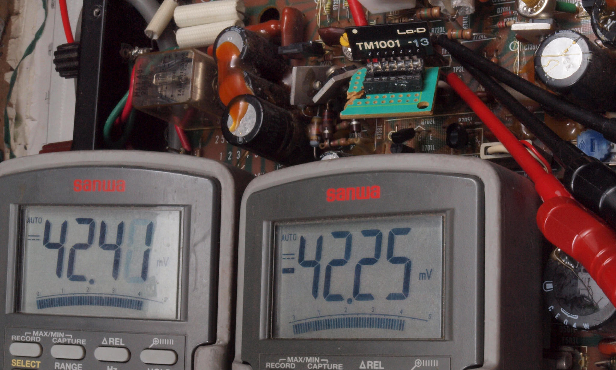 | C43. 修理中 RLモジュール裏。 TR(トランジスター)6個交換し、洗浄後軽くラッカーを吹く。 |