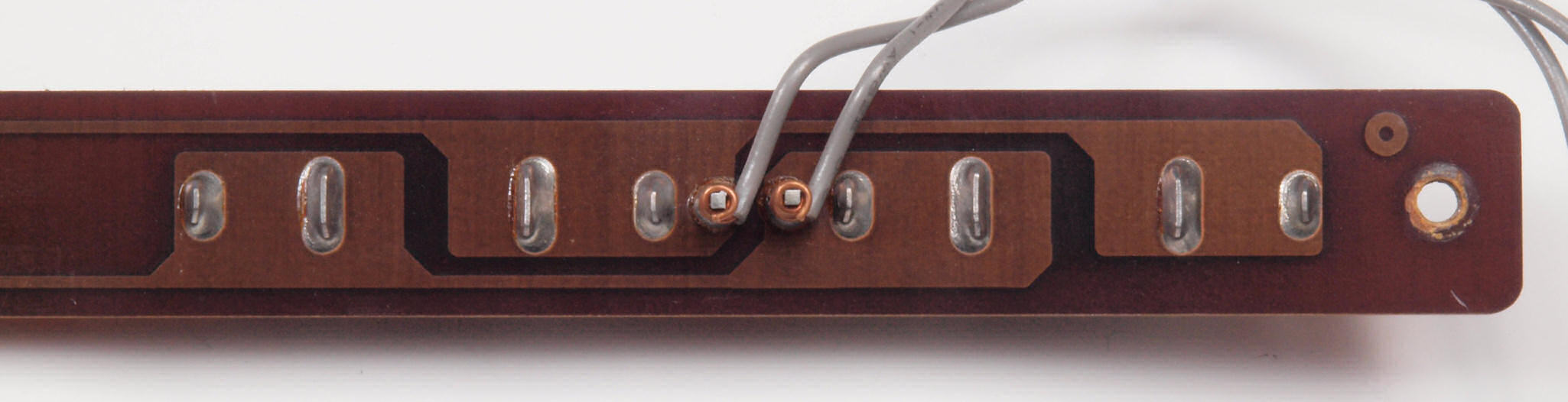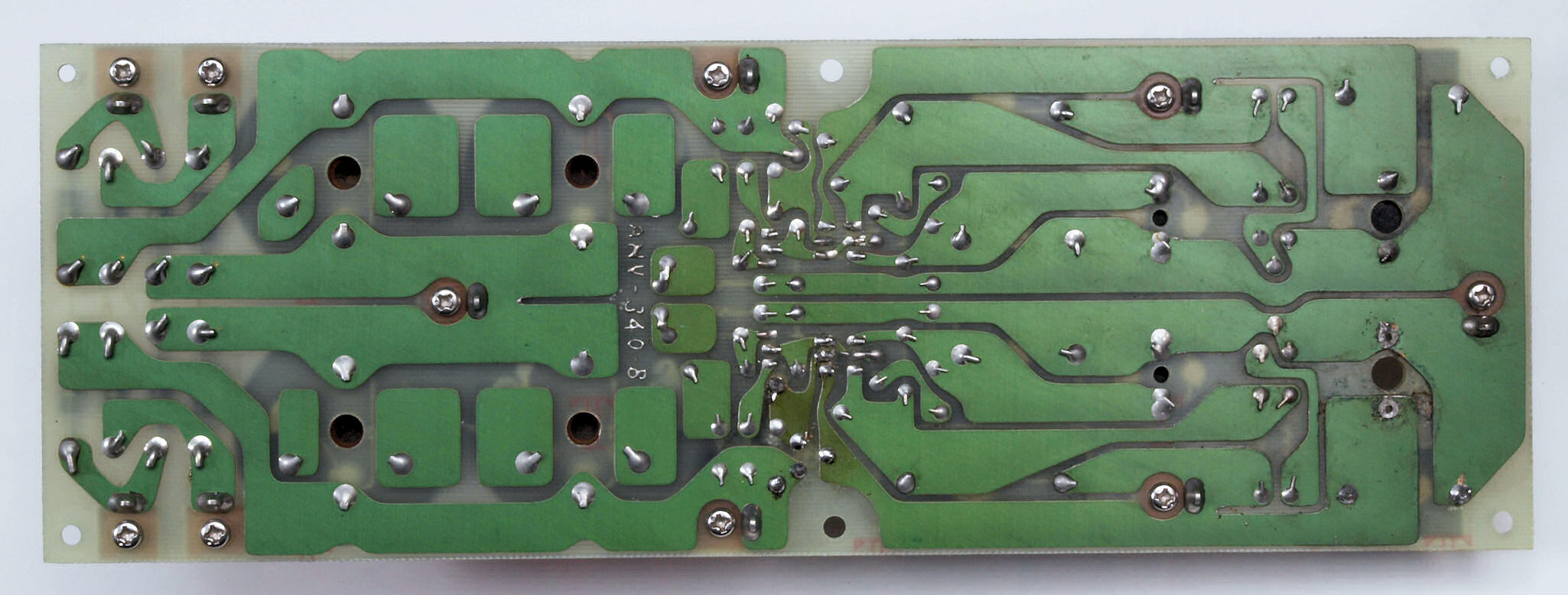 | C42. 修理前 定電圧電源基盤裏。基板はガラスエポキシ基板、銅箔は厚い。 | ||||||||||||||||||