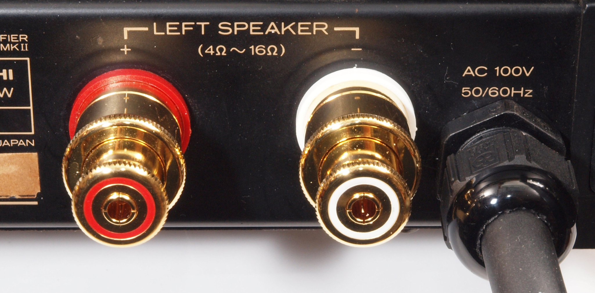 | 注意 このAMPはアースラインが浮いています。 AMPのシャーシにSPの線(アース側)やプリAMPのアースもも接続してはいけません。 RL−SPのアース線も接続(共通)してもいけません、+−の撚りのあるのも使用出来ません。 又、DC(directconnection)入力が可能ですが、絶対に使用しないこと=ここ参照 |