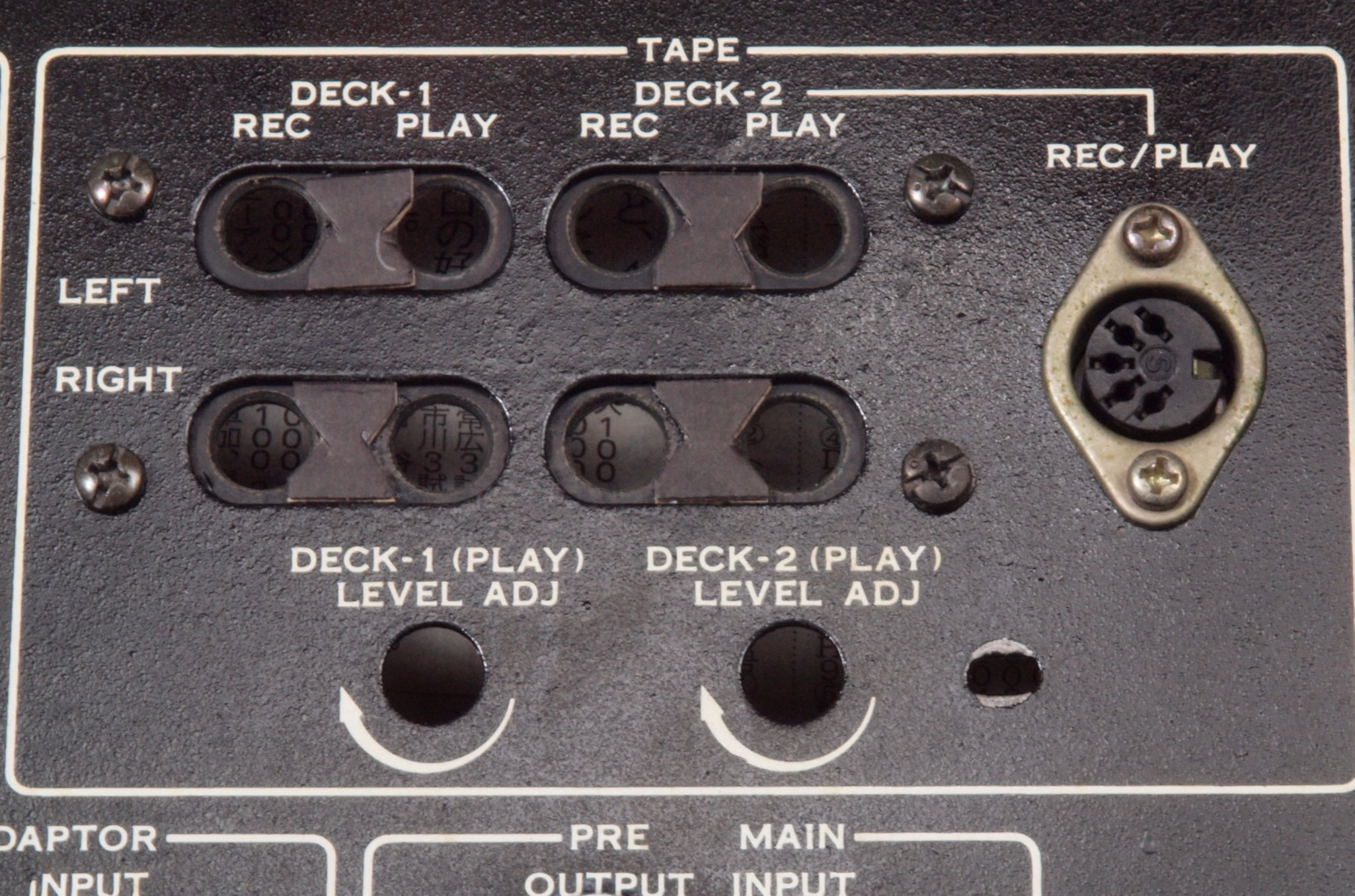 Tape Monitor1、2(PIN)(レベル調整可能)=100mV/50kΩ.