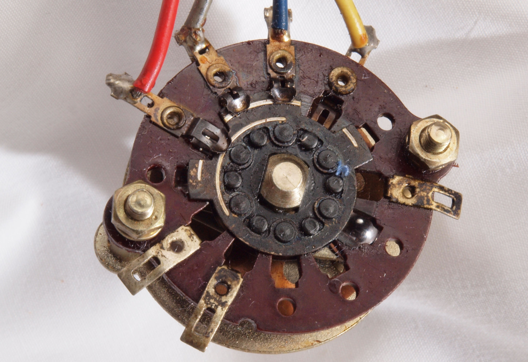 A63. 点検中 交換するテフロン絶縁製RCA端子。 中心電極は円筒状で4つ割方式。