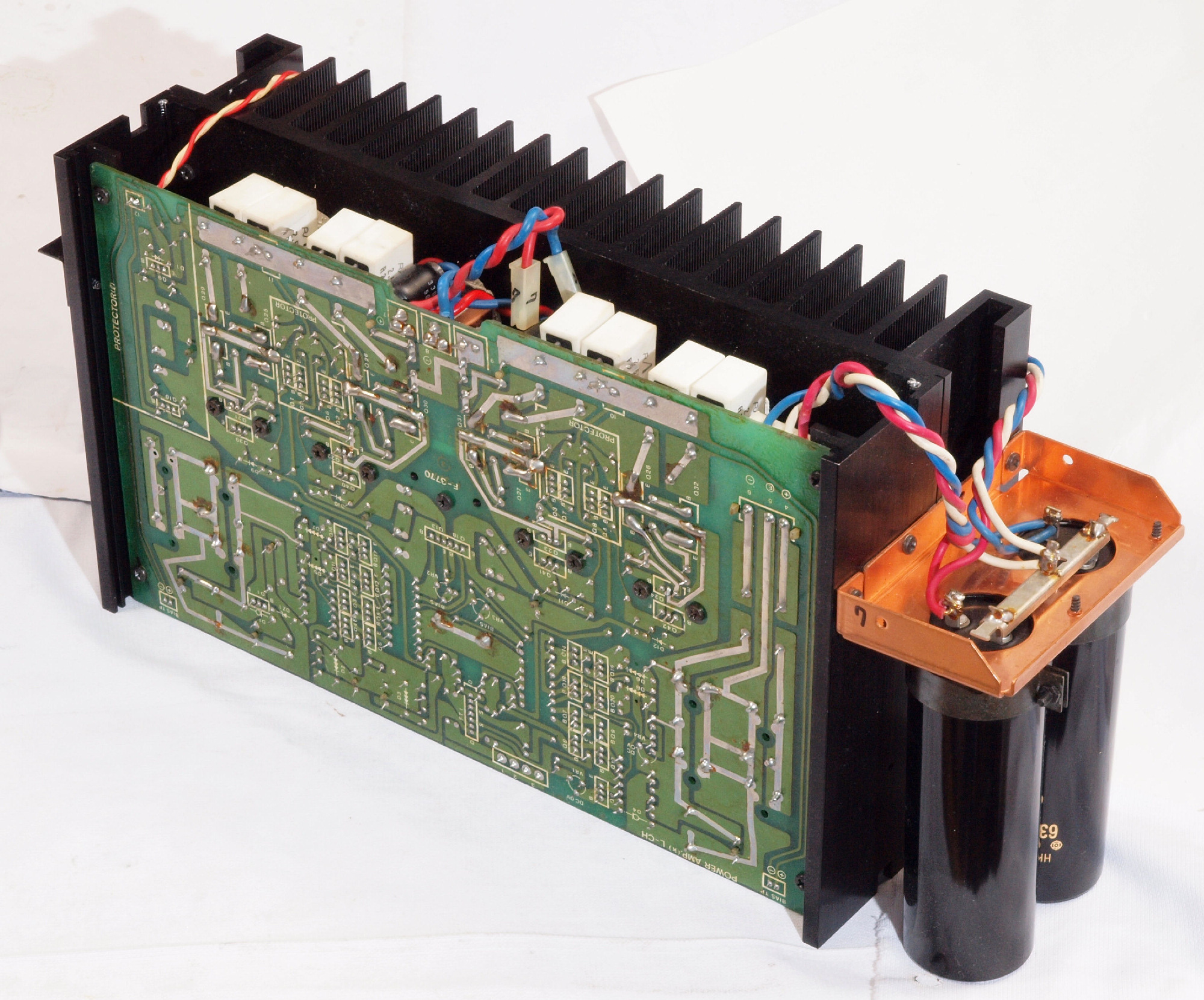 | C115. 修理中 R側AMPブロック、横取り付けの電解ブロックコンデンサー、底だけの固定なので曲がっている。 | ||||||||||||||||||||||||||||||