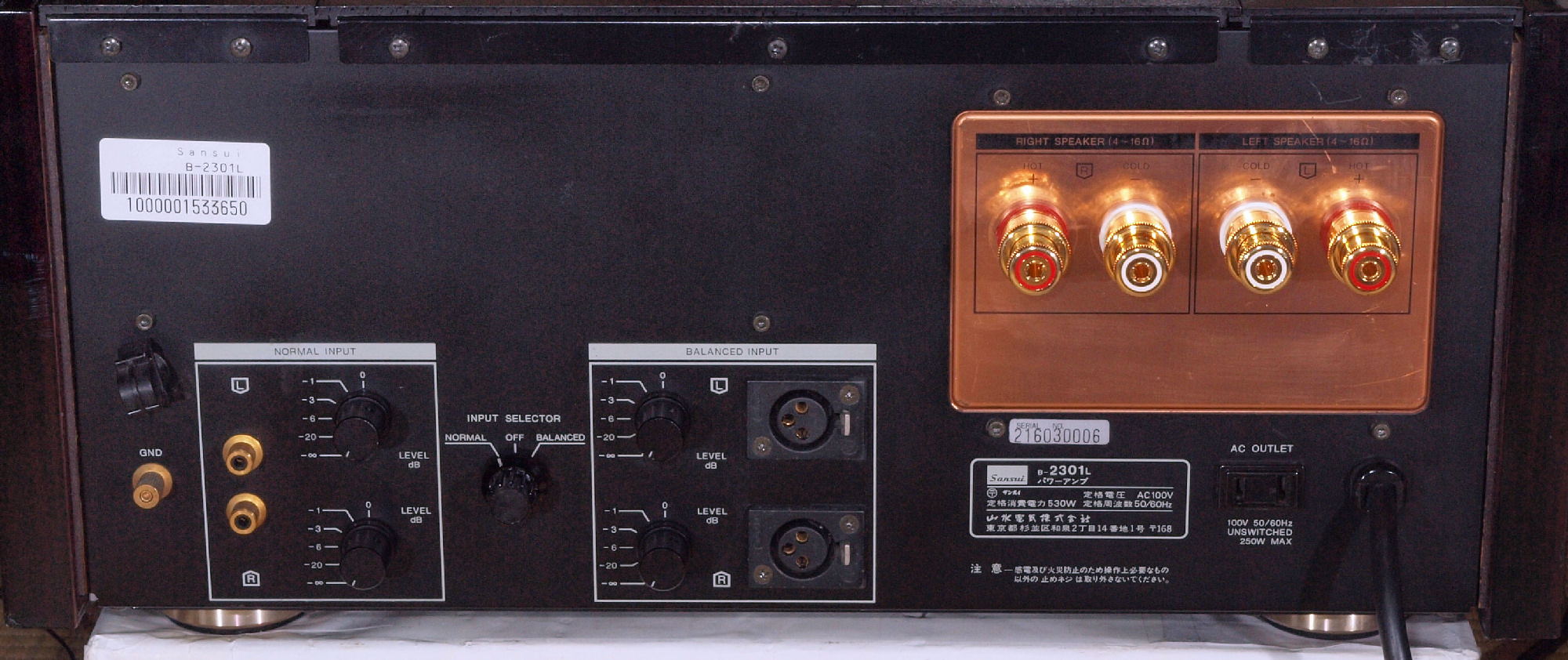| S. Sansui B−2301L の仕様(マニアルより) | ||||||||||||||||||||||||||||||