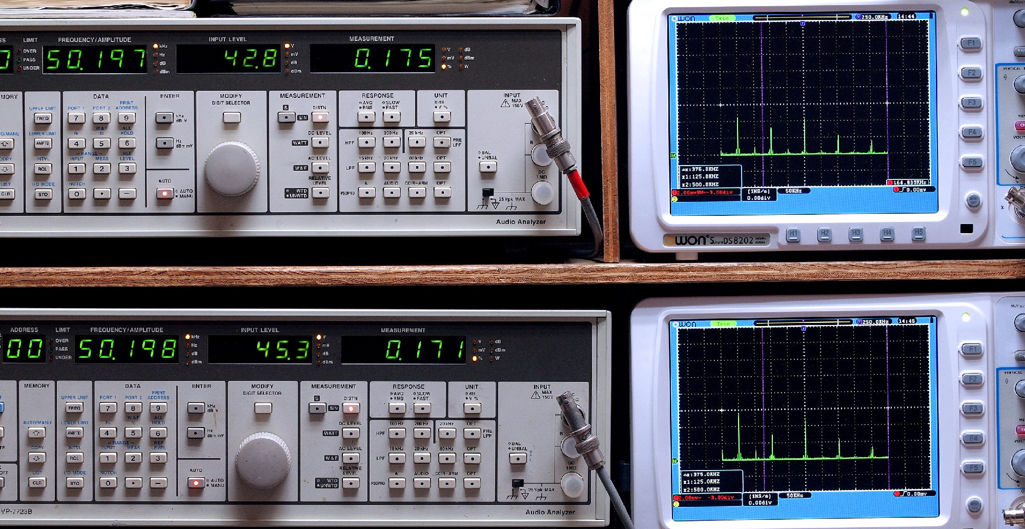 | T. 修理前点検測定。 画像をクリックすると、大きく(横幅2050ドット)表示されます T1. 出力・歪み率測定。 「見方」。 上段中 右側SP出力を「Audio Analyzer Panasonic VP−7723B」により測定。 表示LED、 左端=メモリーNo、 中左=周波数測定、 中右=出力電圧測定、 右端=歪み率測定。 上段右端 VP−7723Bの基本波除去出力を「owon SDS8202(200MHZ)」で「FFT分析」表示。 下段中 左側SP出力を「Audio Analyzer Panasonic VP−7723B」により測定。 表示LED、 左端=メモリーNo、 中左=周波数測定、 中右=出力電圧測定、 右端=歪み率測定。 下段右端 VP−7723Bの基本波除去出力を「owon SDS6062(200MHZ)」で「FFT分析」表示。 下段左端 オーディオ発振器 VP−7201A より50Hz〜100kHzの信号を出し(歪み率=約0.003%)、ATT+分配器を通し、AMPに入力。 よって、ダイアル設定出力レベルより低くなります。測定機器の仕様や整備の様子はこちら、「VP−7723B」「VP−7201A」。 FFT画面の見方はこちら。 |
