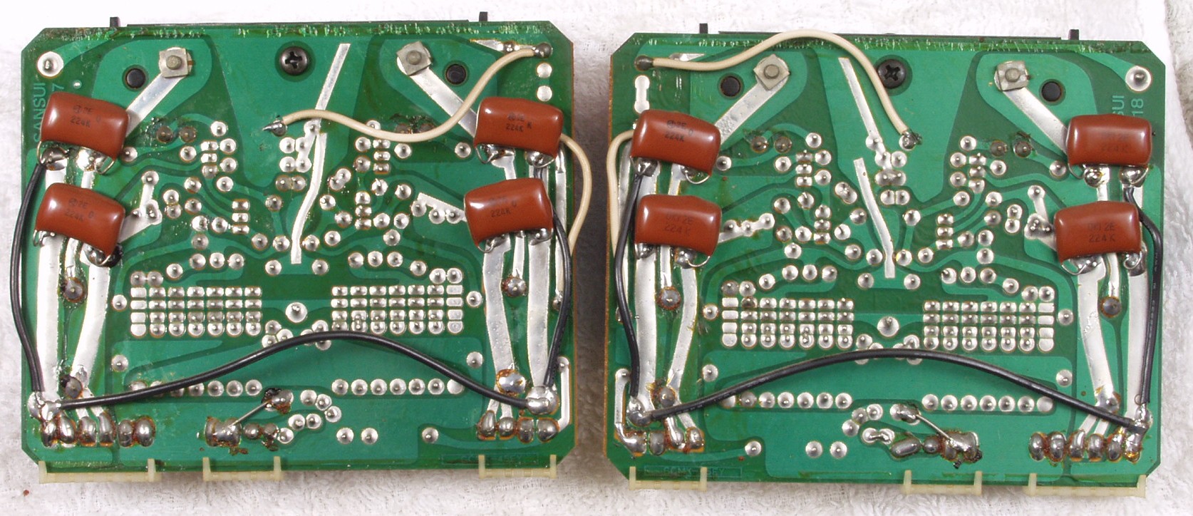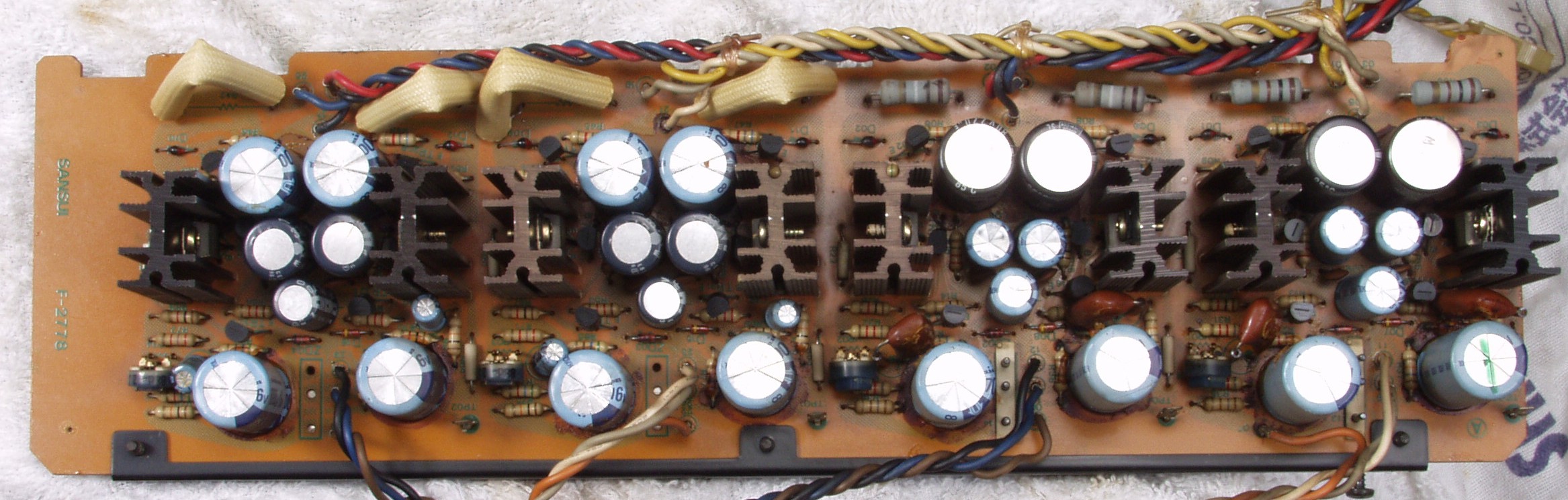 | C4B. 修理後 RL EQ−AMP基板 電解コンデンサー4個、複合FET(電界効果トランジスター)2個交換 | ||||||||||||||||||||||||||||||||||||||||||||||||||||||||||||||||||