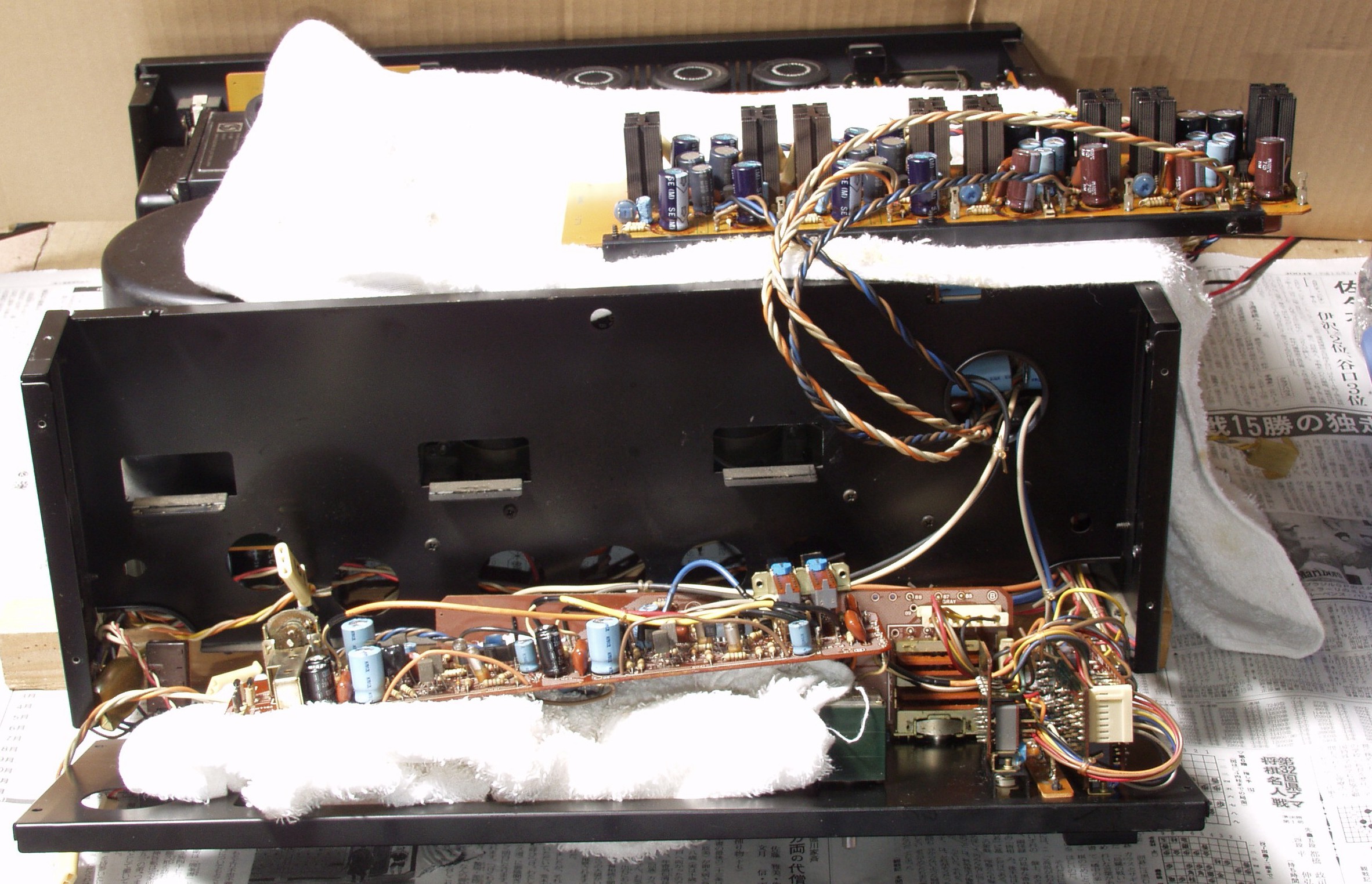 | C. 修理状況 C1. 修理中 汎用機器は、この様に前パネルを取らないと基板が取り出せない |