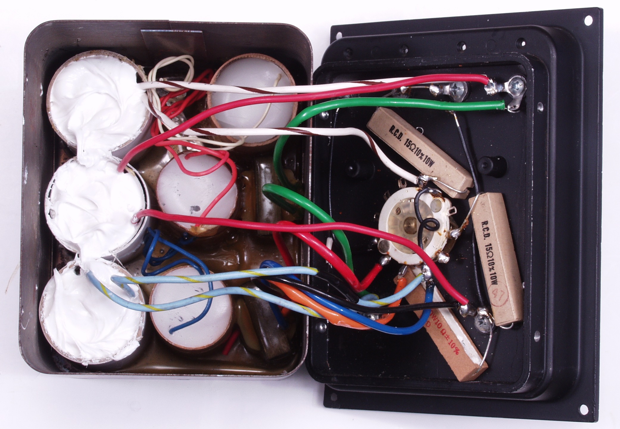 | C2B. 修理後A コンデンサー3組挿入、シリコンでしっかり固定する。古いフイルムコンデンサーは使用せずに残す。 | ||||||||||||||||