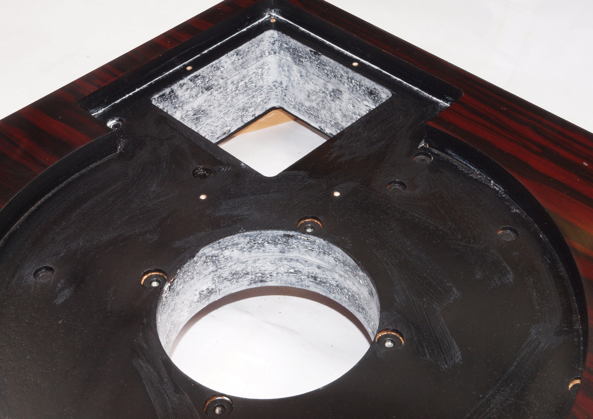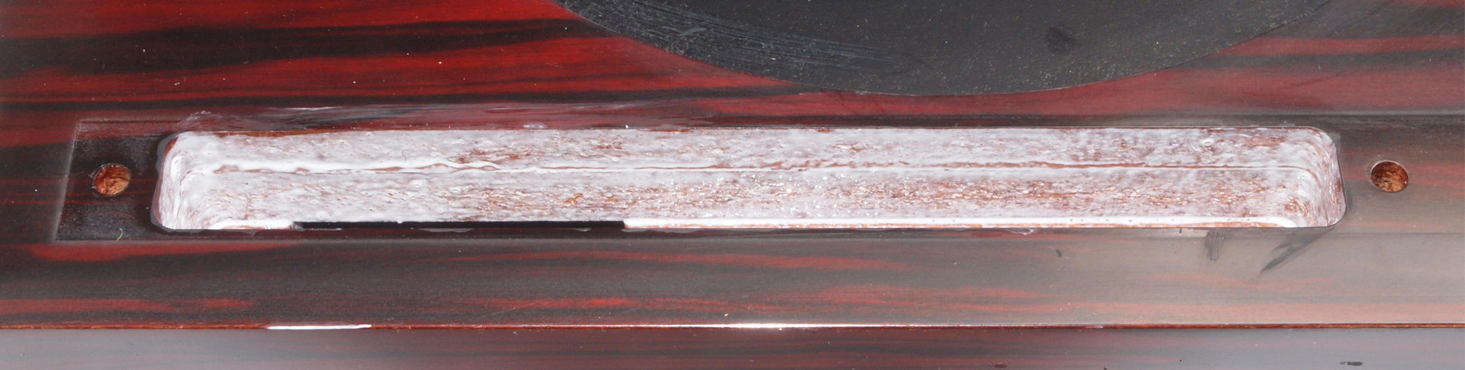 | W25. 修理中 モーター取付穴、タンテーブル軸受取付穴、反対側。 圧縮材にボンドを染みこませる。 | ||||||||||||||||||||||||||||||||||||||||||||||||||||