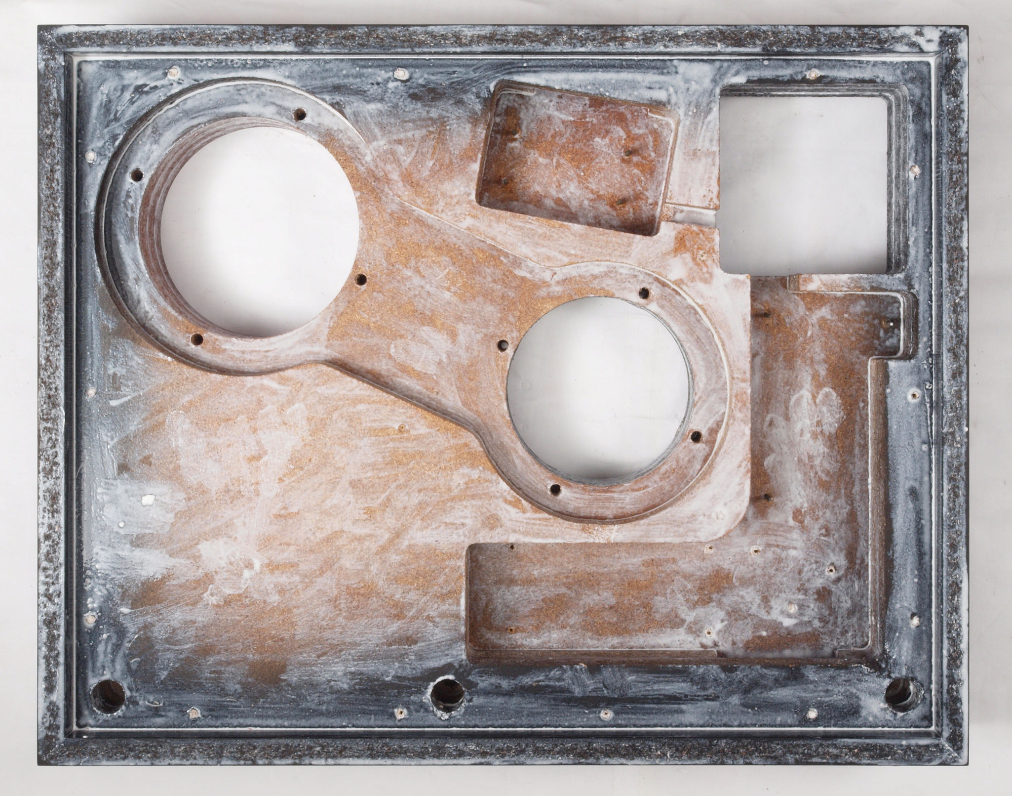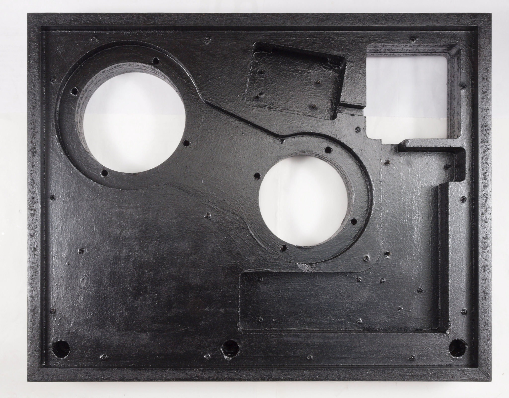 | WB6. 修理後 下蓋のアーム取り付穴、トランスカバー取り付穴、反対側。 乾燥後さらにペンキを塗る。 | ||||||||||||||||||||||||||||||||||||||||||||||||||||