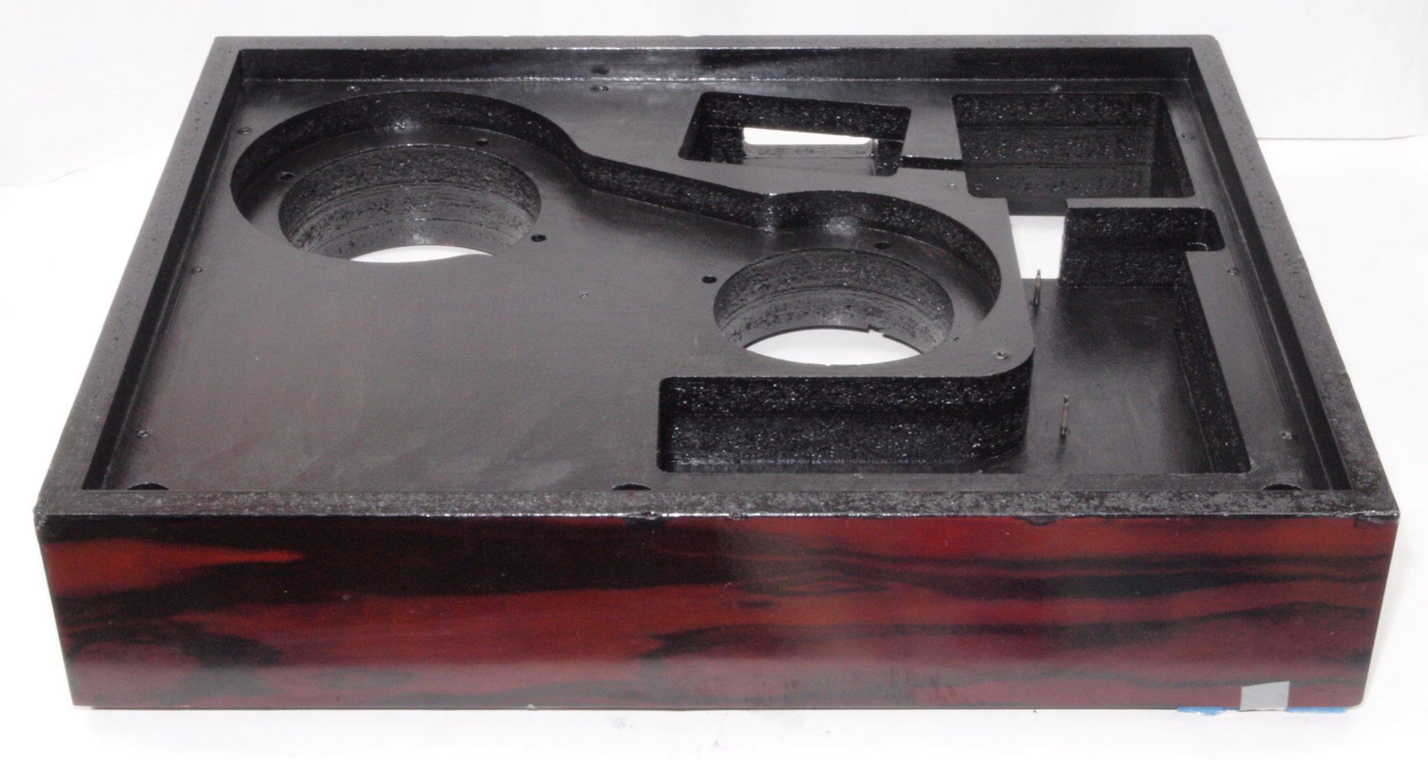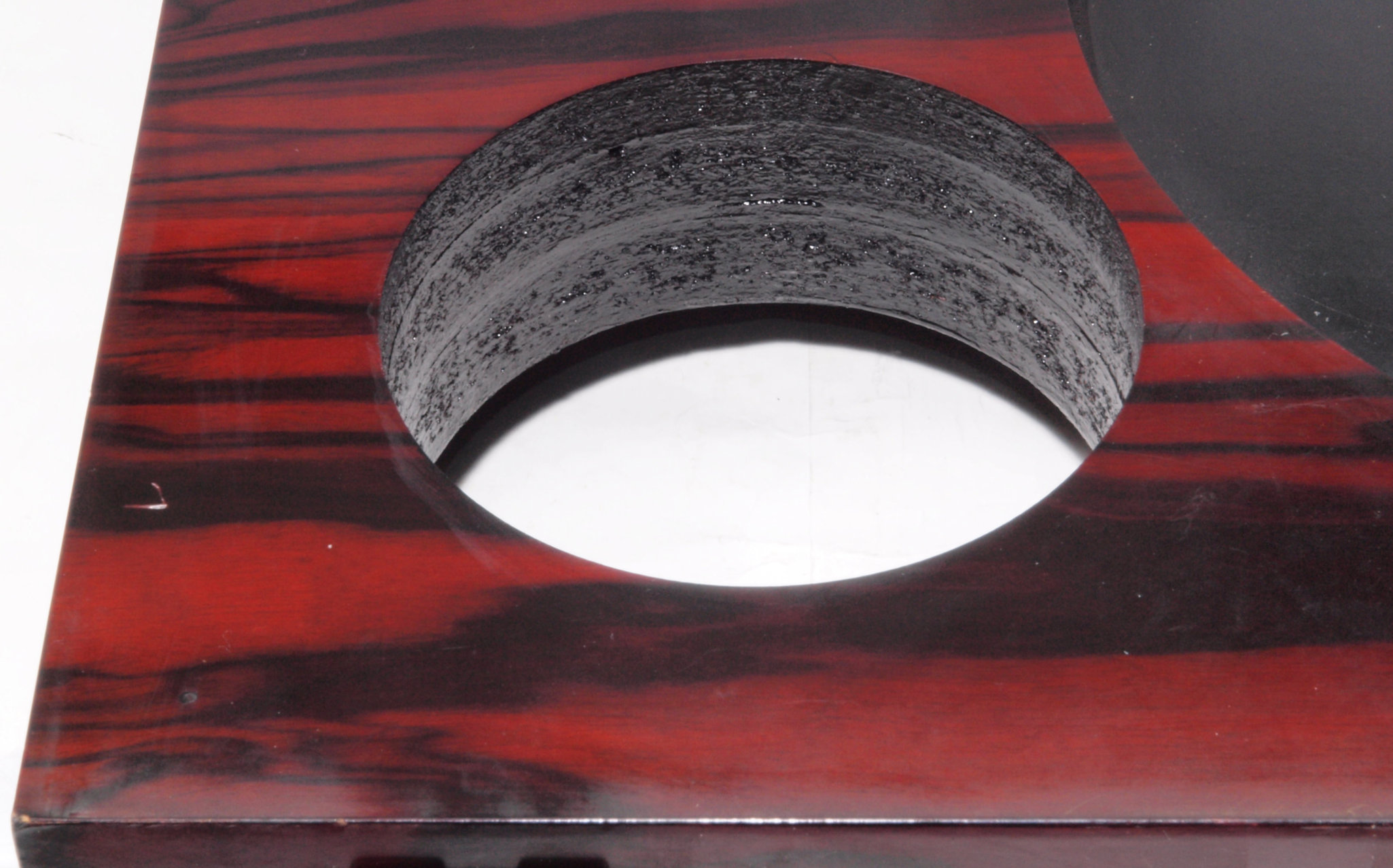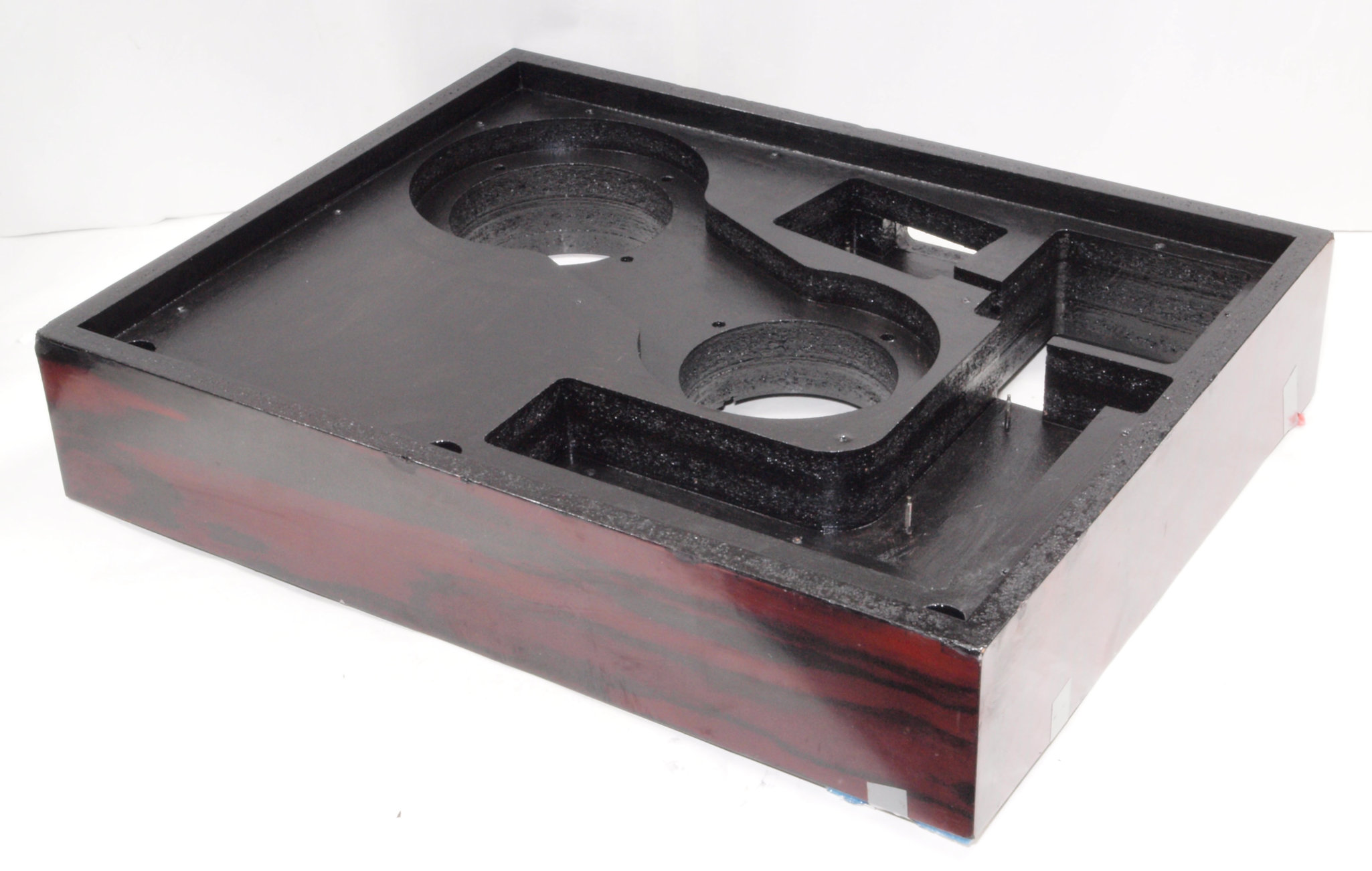 アームベースには円形のキズがあります。 プラッターは若干のくすみはありますが、 目立つキズなく光沢があります。 キャビネットは前面や側面の下部にキズの補修箇所があります。