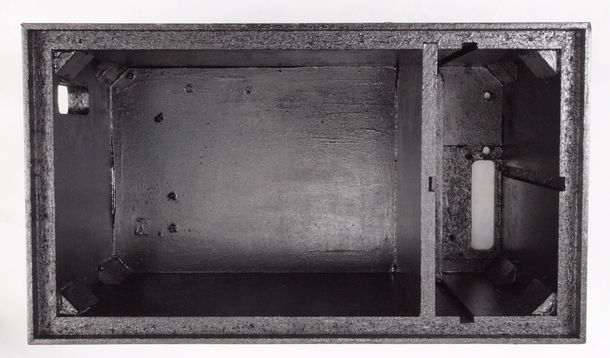 | A32. 点検中、 下蓋取り、下から見る。仕切り板が接着されている。 | ||||||||||||