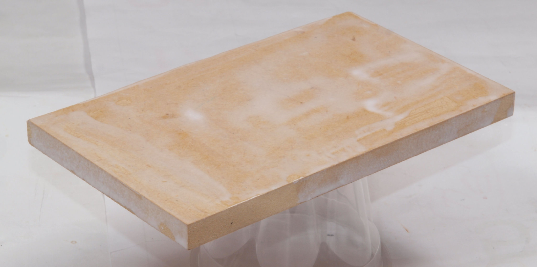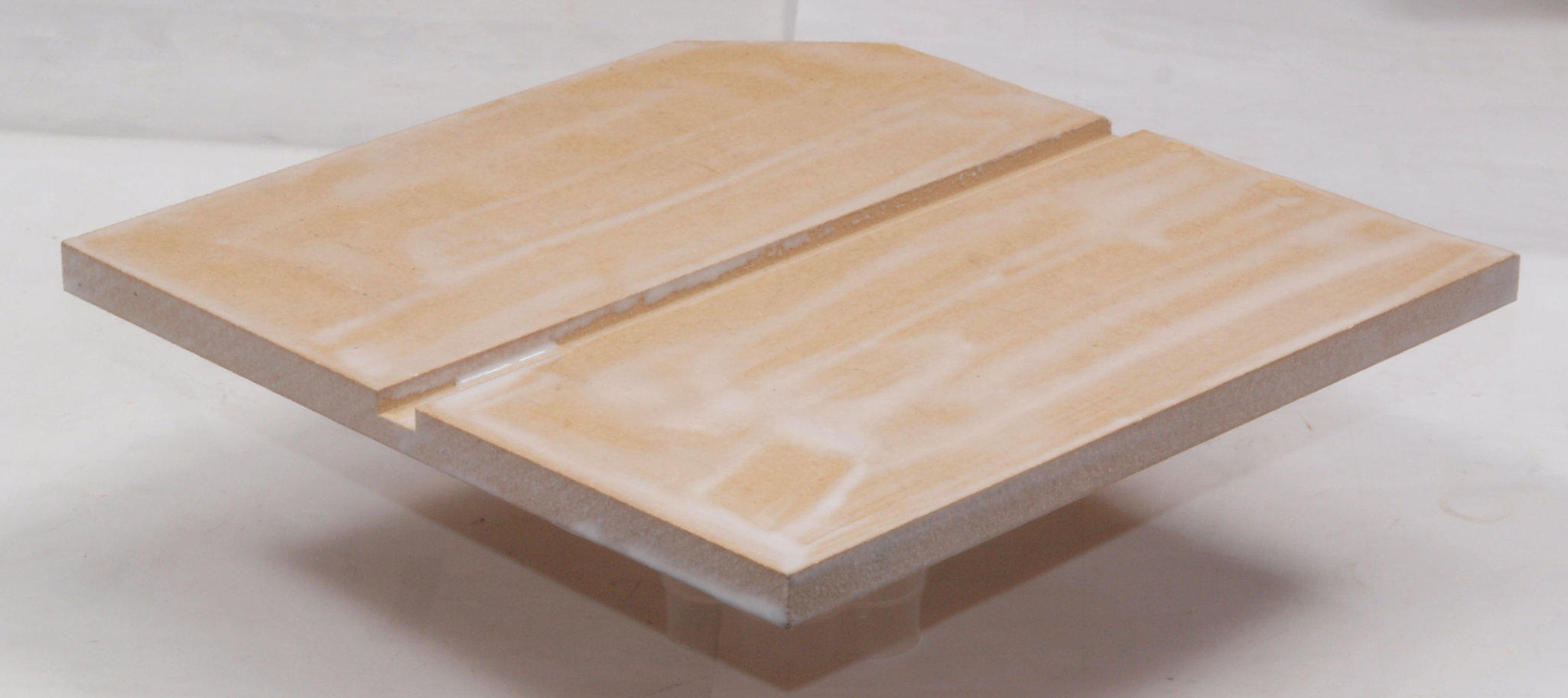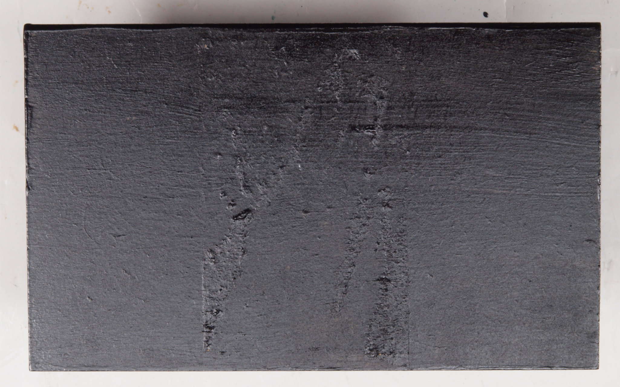 | C35. 修理中 接着材が劣化した木箱、下後左から見る。圧縮板にボンドを塗って固めている。 | ||||||||||||
