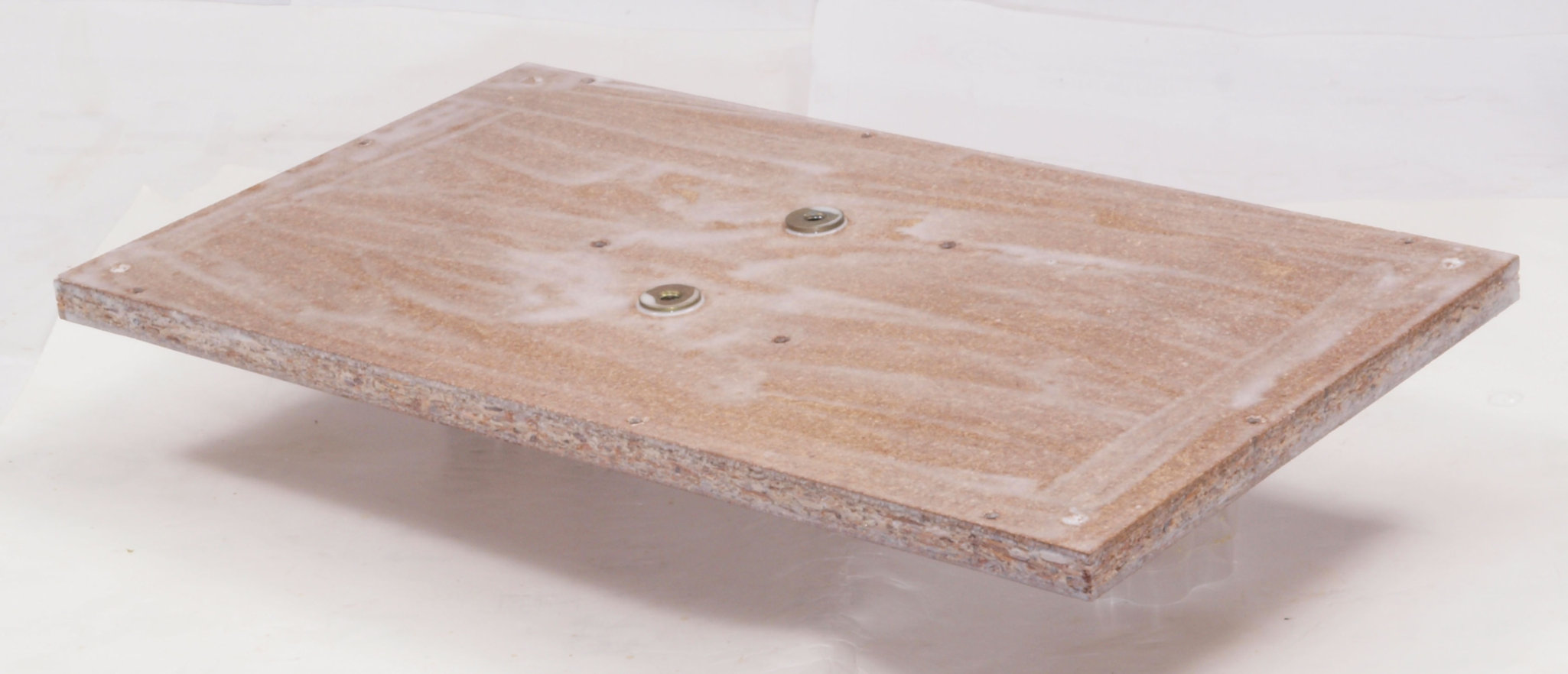 | C32. 修理中 接着材が劣化した木箱、下前右から見る。圧縮板にボンドを塗って固めている。 | ||||||||||||