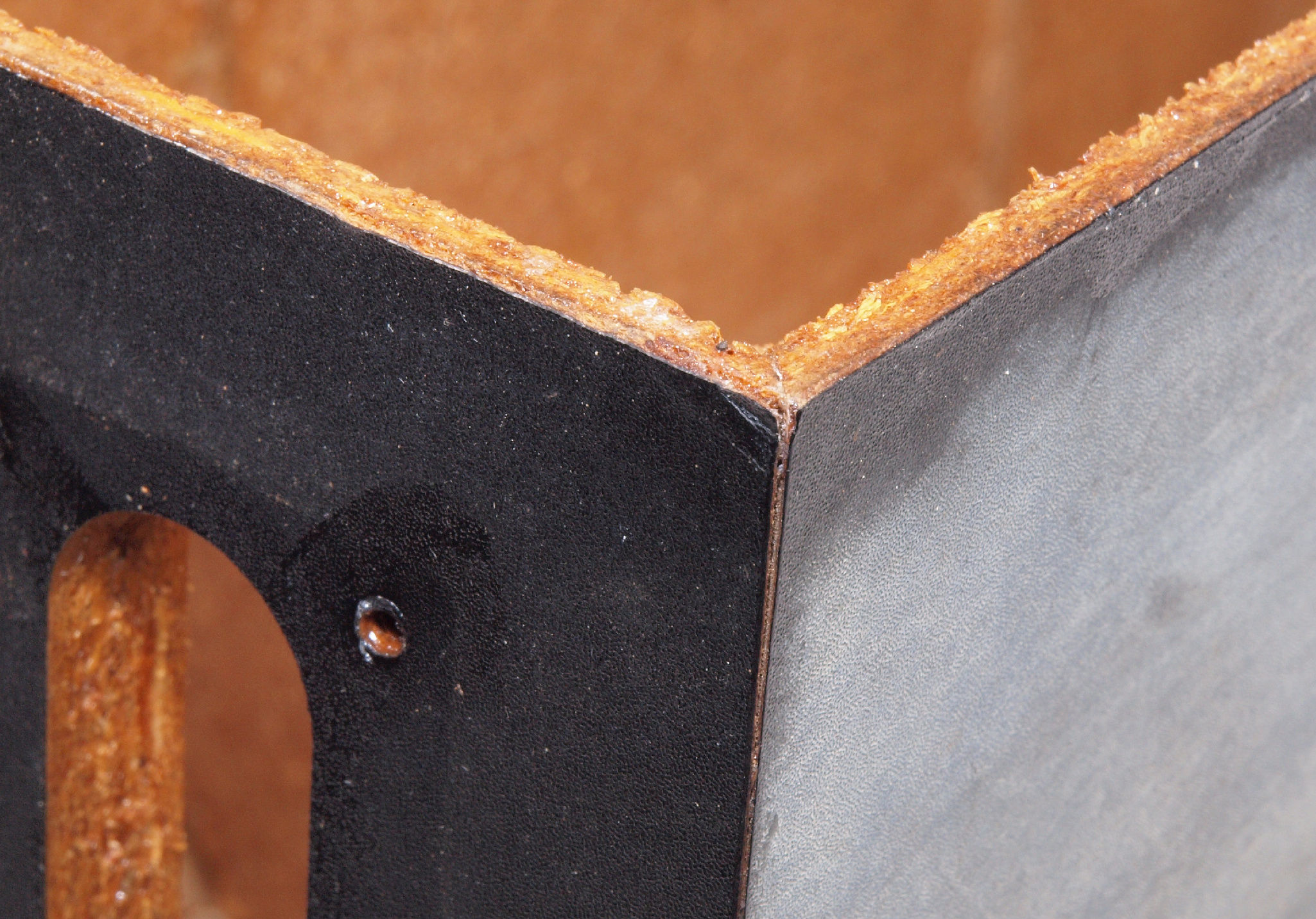 | C37. 修理前 接着材が劣化した木箱。左側。 |