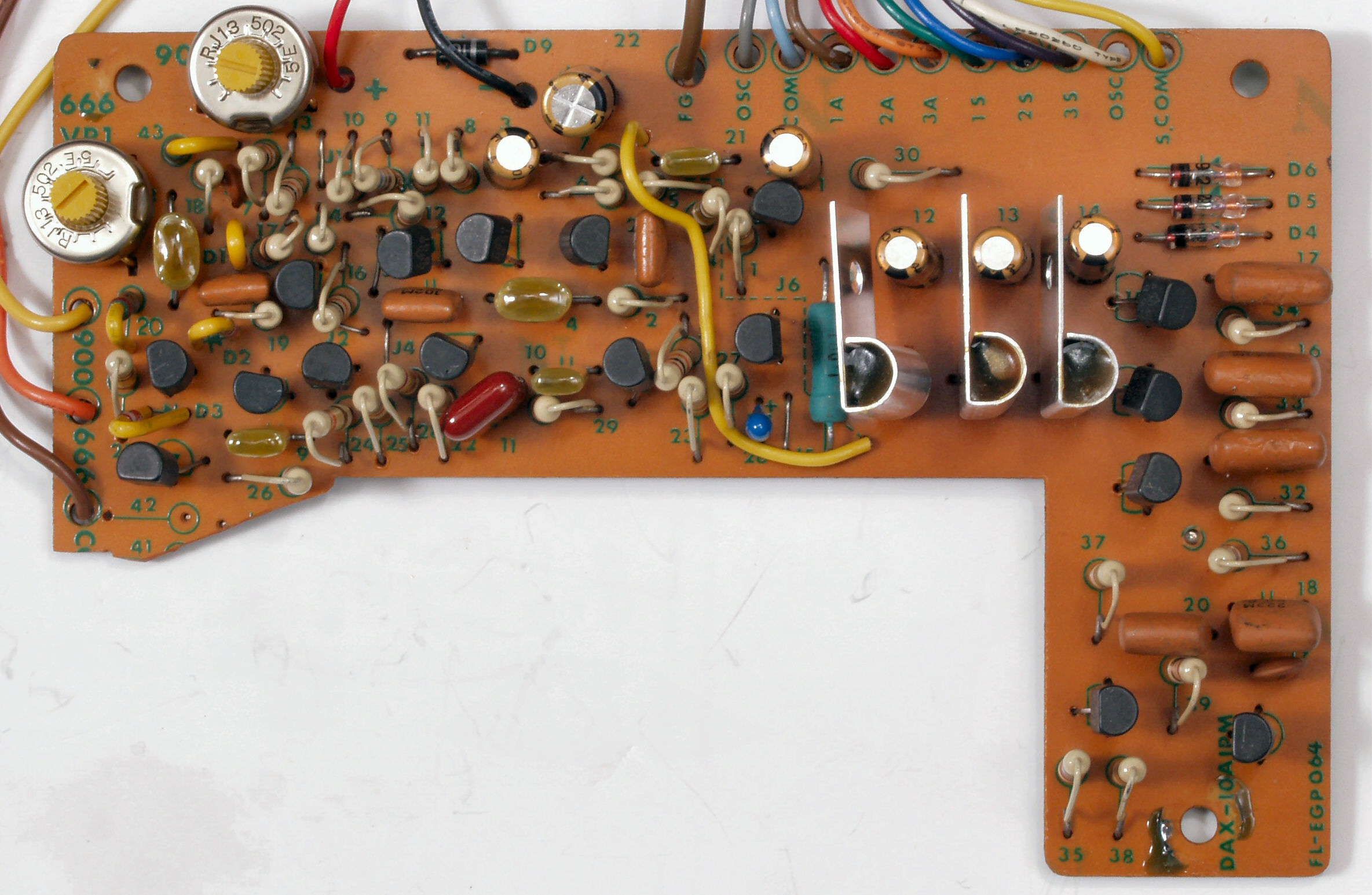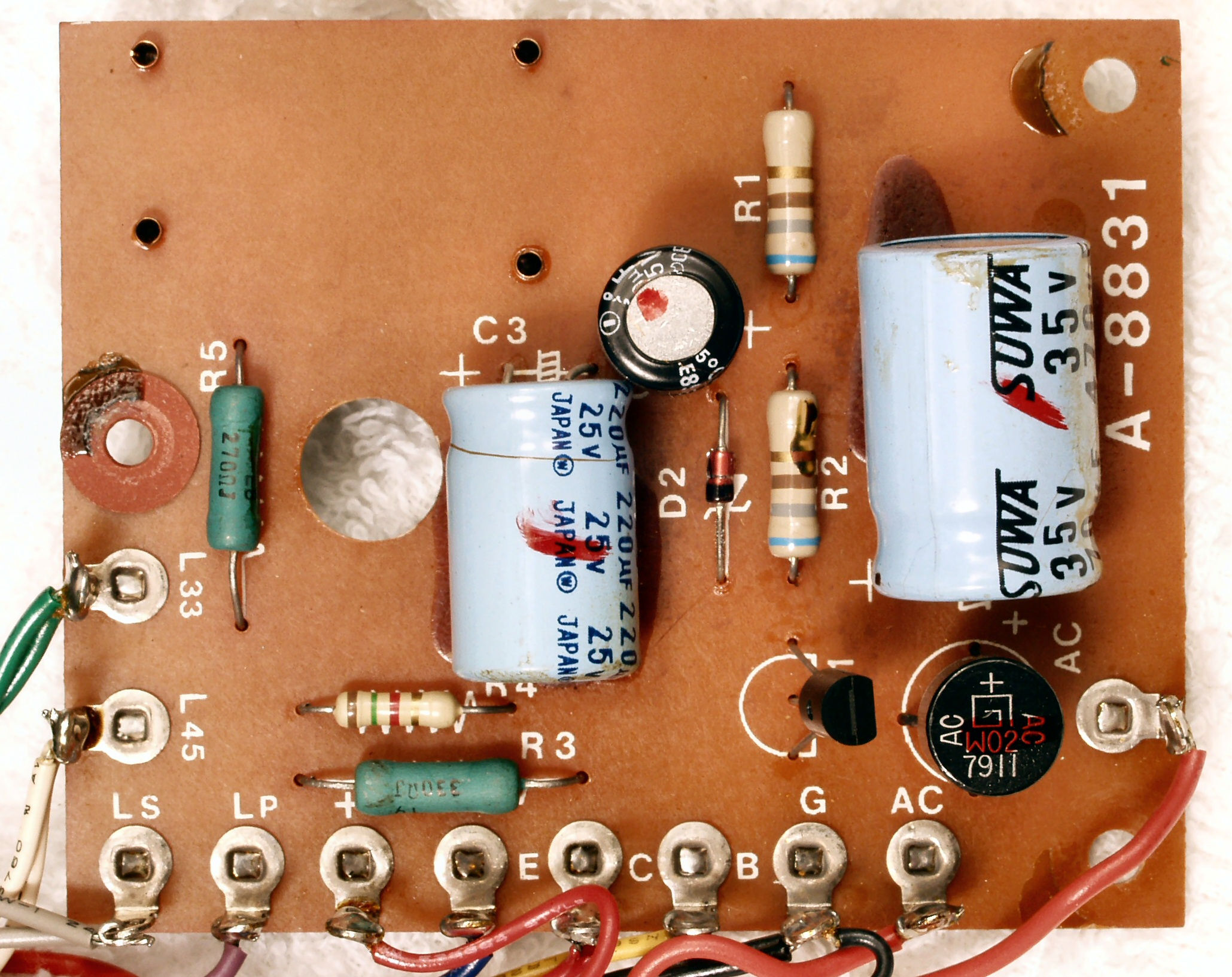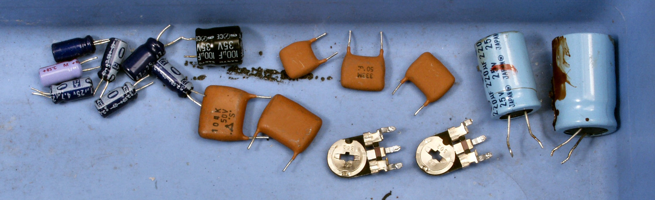 C2B. 修理後 メイン基板 半固定VR2個、電解コンデンサー6個、フイルムコンデンサー6個交換 |