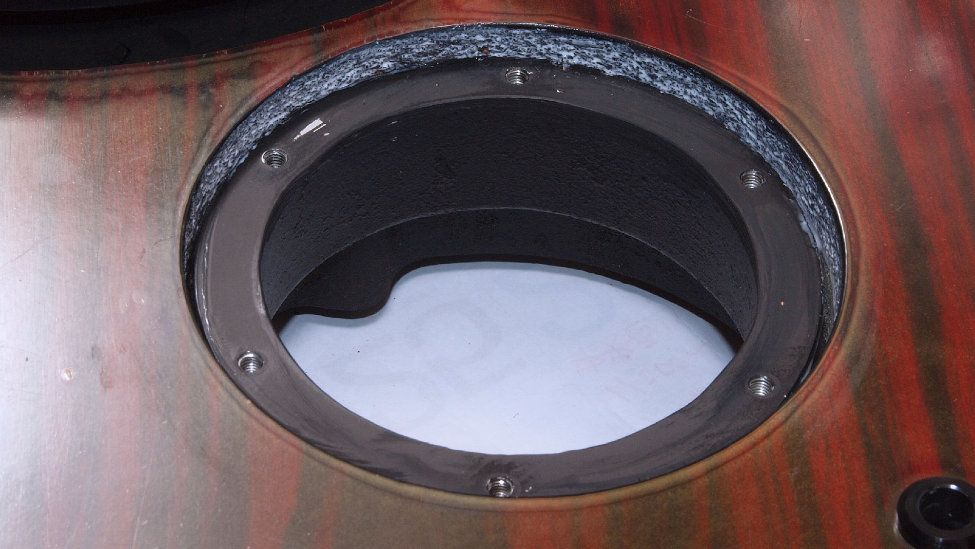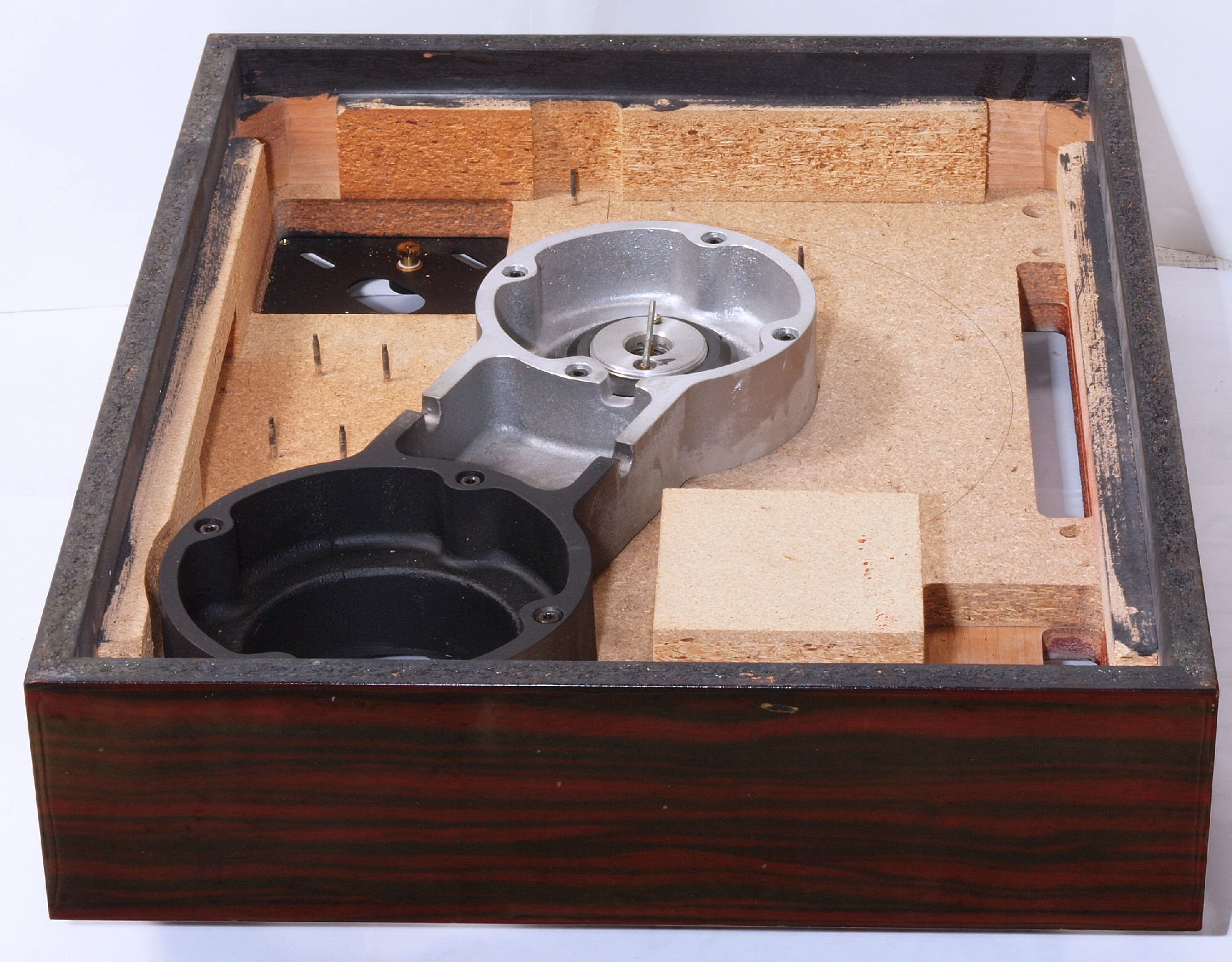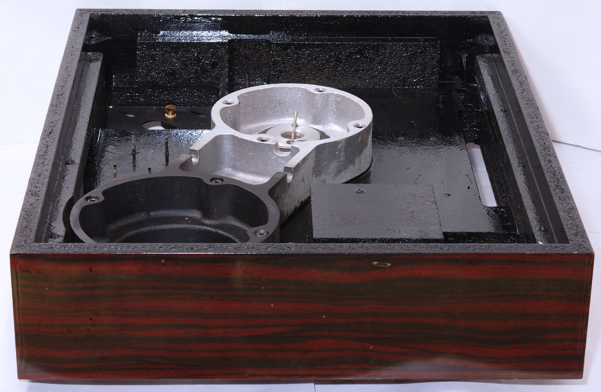 W76. 修理中 底板裏、アーム取り付け穴、裏の圧縮材、さらに、キズを消す為と割れを防ぐのに、ラッカーを吹く。