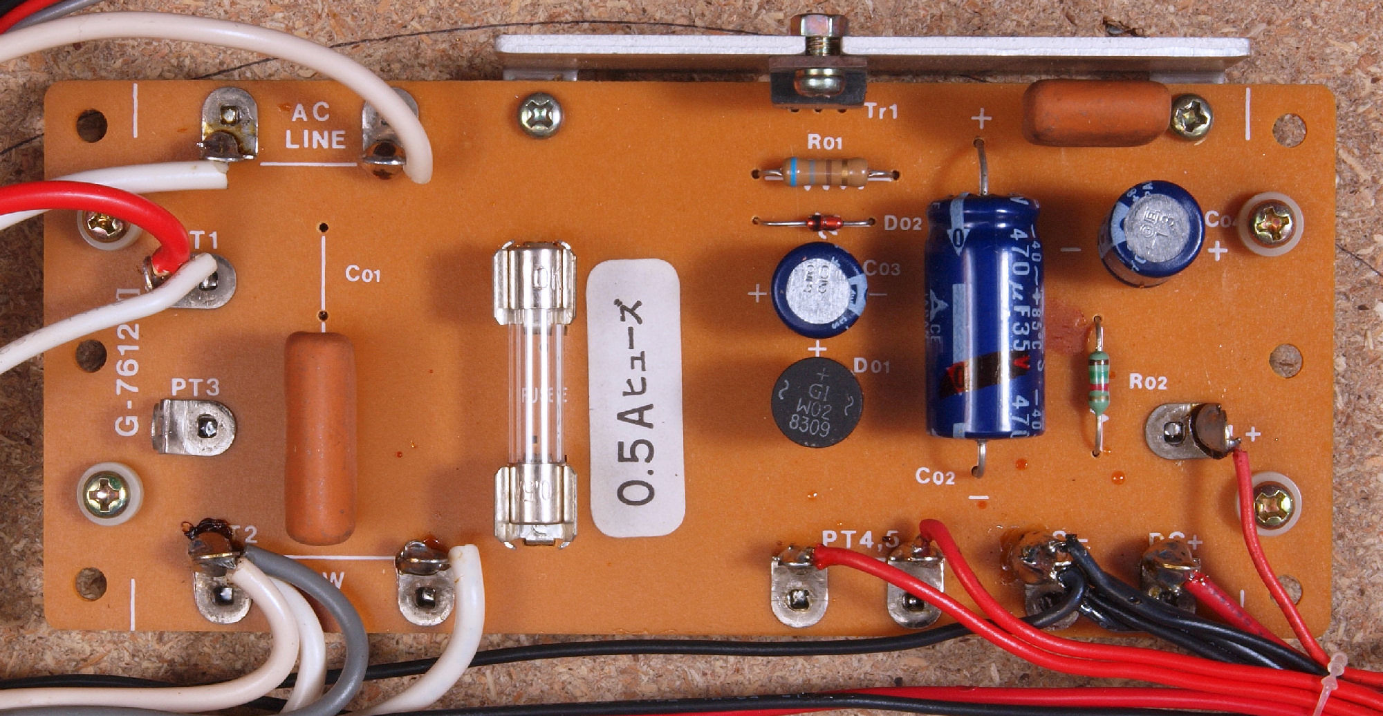 C41. 修理後 電源・フューズ基板、 電解コンデンサー3個交換