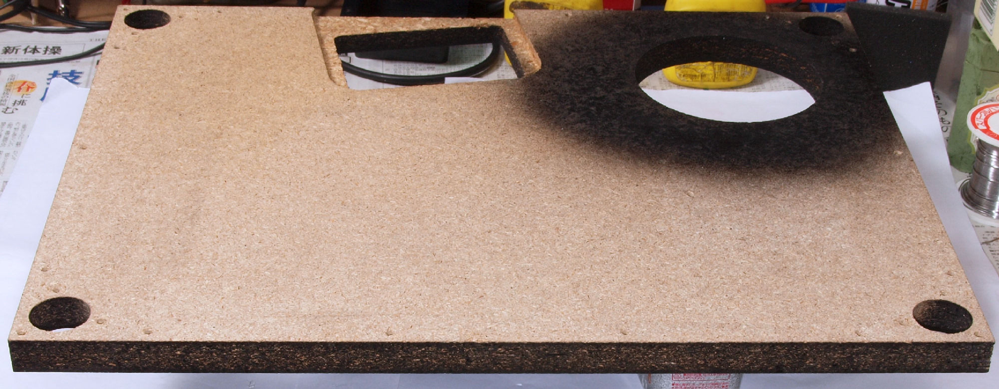 W73. 修理(塗装)後 底板裏、トランスカバーを取付ける所、キズを消す為と割れを防ぐのに、ラッカーを吹。