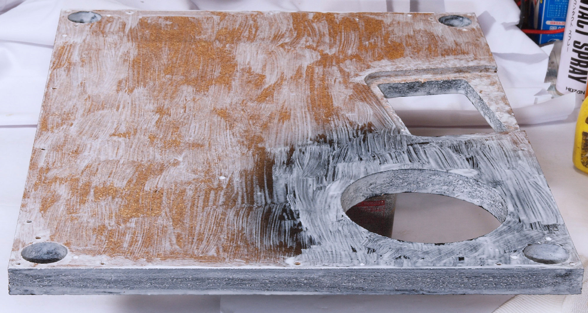 | W76. 修理中 底板裏、アーム取り付け穴、裏の圧縮材、さらに、キズを消す為と割れを防ぐのに、ラッカーを吹く。 | ||||||||||||||||||||