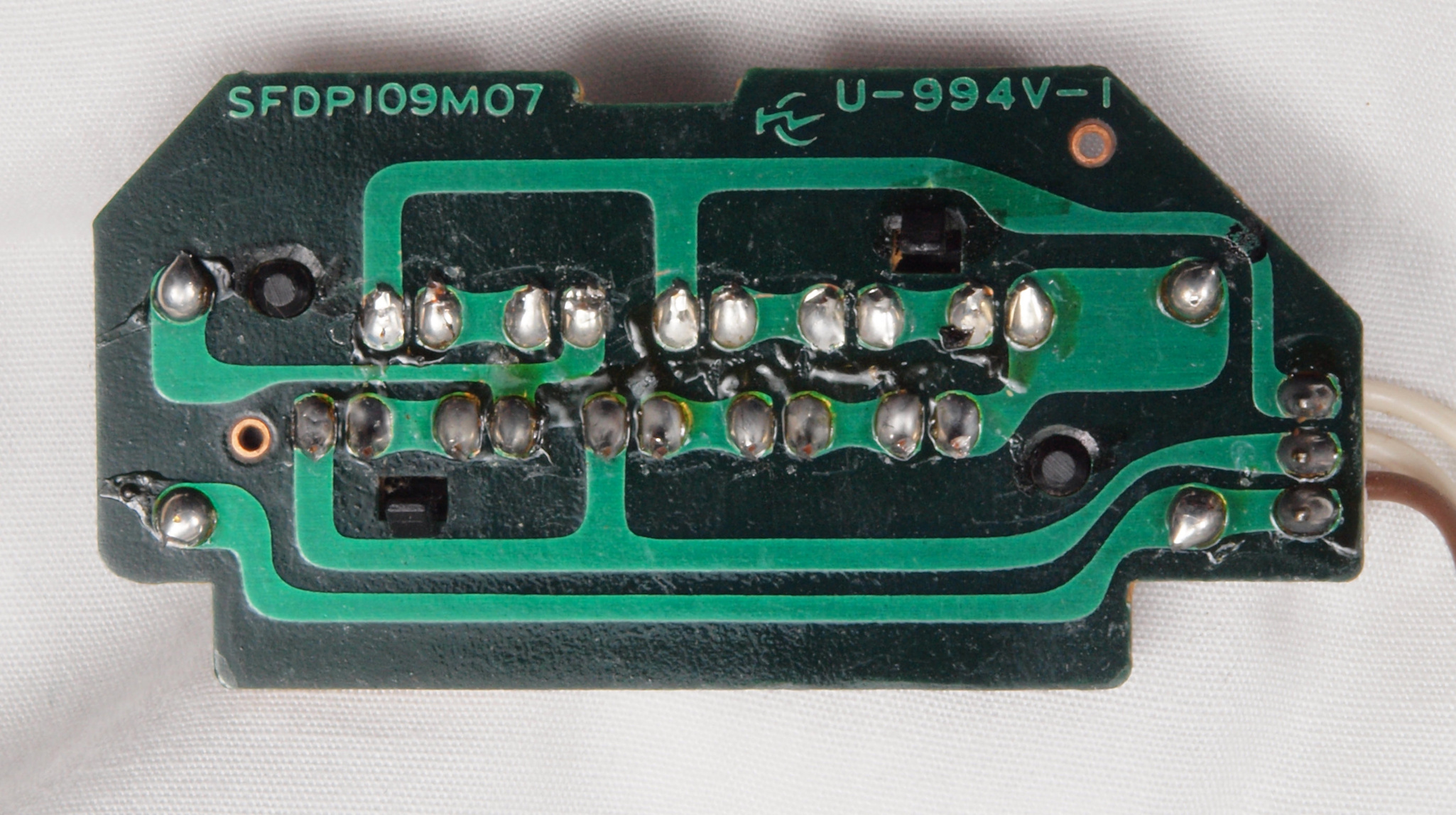 | D35. 完成ターンテーブル操作基板基板裏。 余分なフラックスを落として、コート液を塗る。 | ||||||||||||||||||||||||||||||||||||||||