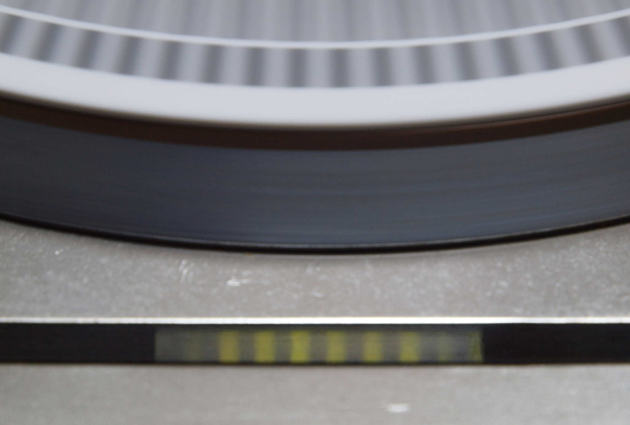 | E12. 測定 33回転。 ストロボが見えにくいのは、斜めに撮影したのと、シャッターとの同期の為 | ||||||||||||||||||||||||||||||||||||||||