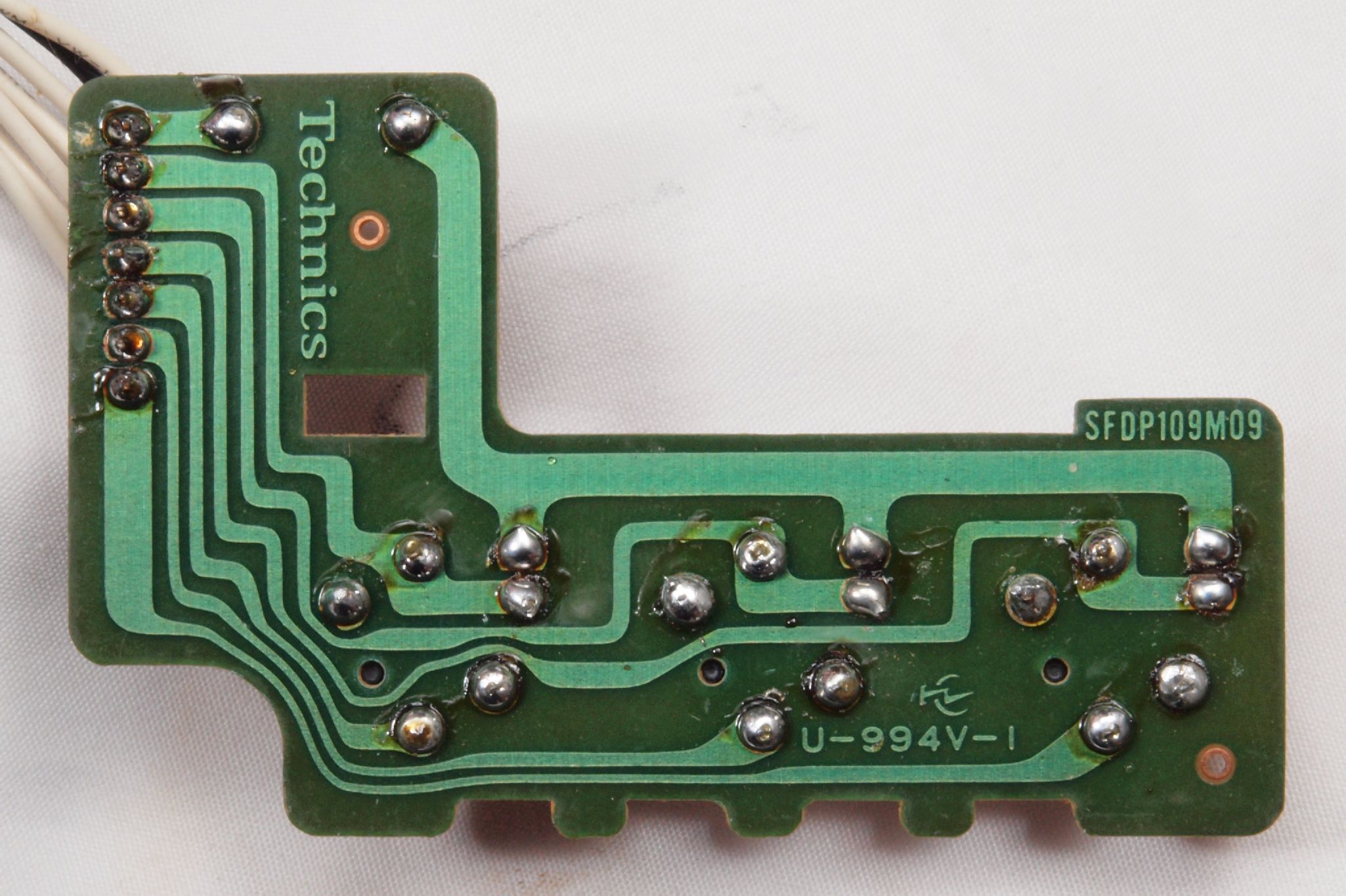 | D35. 完成ターンテーブル操作基板基板裏。 余分なフラックスを落として、コート液を塗る。 | ||||||||||||||||||||||||||||||||||||||||