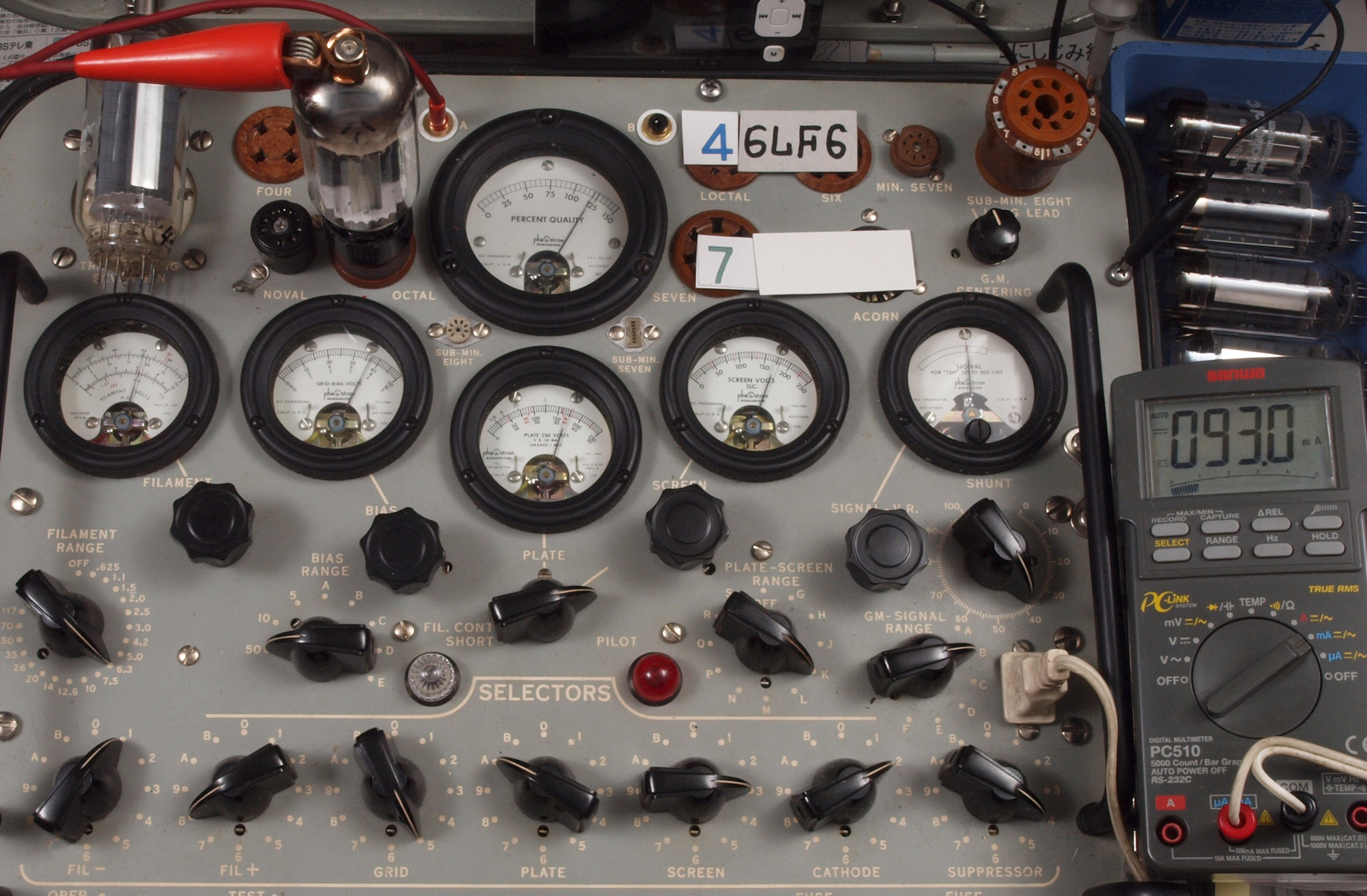 | 予備真空管の測定。 6LF6 右から6番目、7番目、、、、10番目。 |