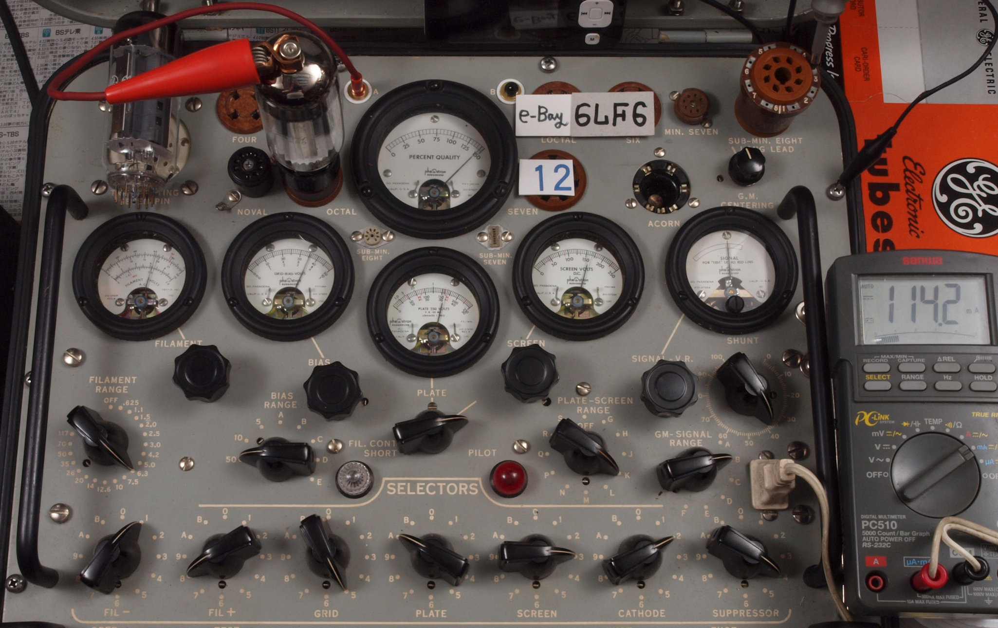| V12. 2本目 6LF6 。 Gm測定=8000μmho、 Ip=132.2mA。 |