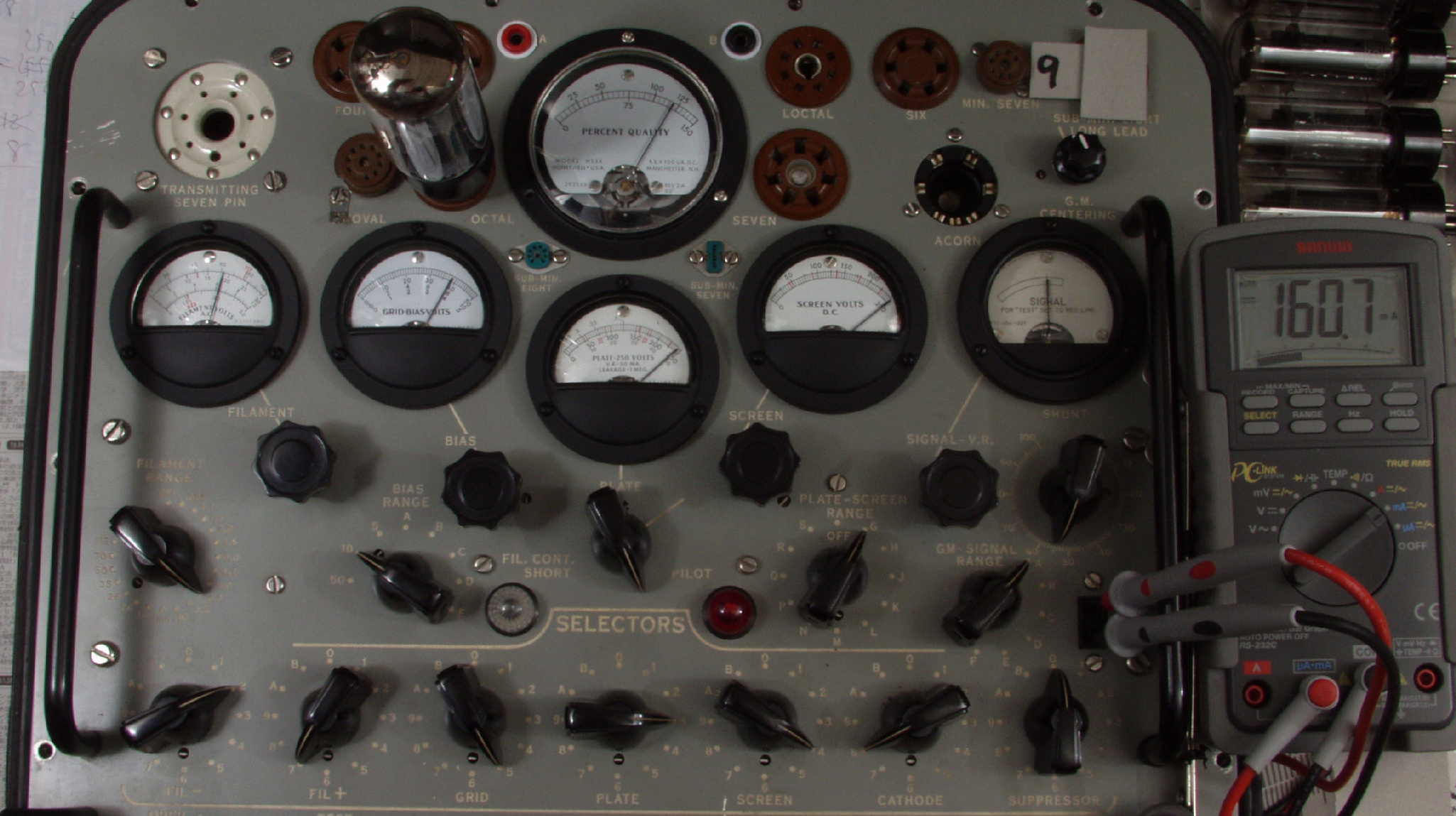 M9. 9本目 6G-B8 測定。 Gm=24000μmho、Ip=160.7mA。RangeSW=A、FullScale=30000μmho。