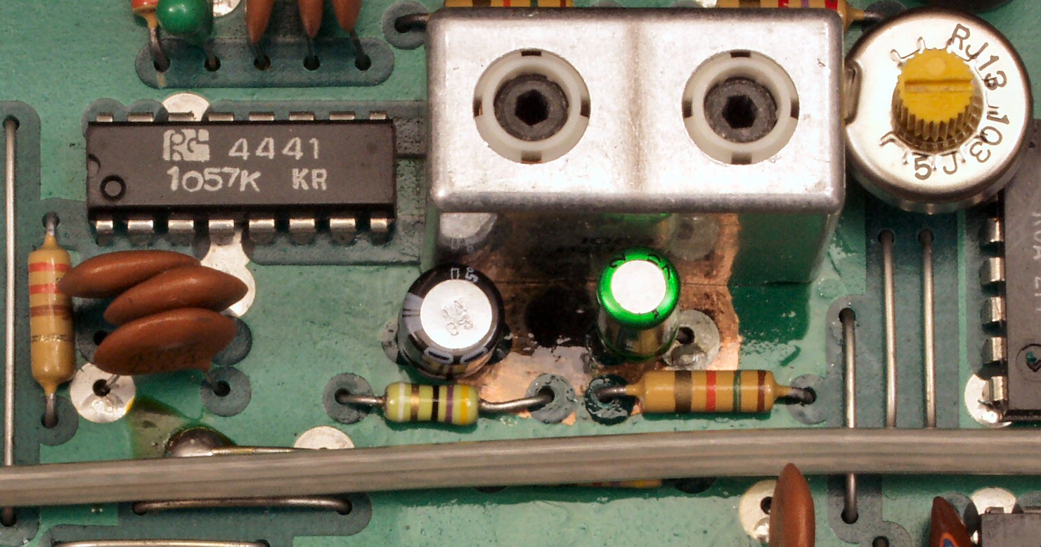 | C. 修理状況。 画像をクリックすると、大きく(横幅2050ドット)表示されます。 C11. 修理前 基板腐食ケ所1、バックアップ電池及び電解コンデンサーからの液漏れ。 |