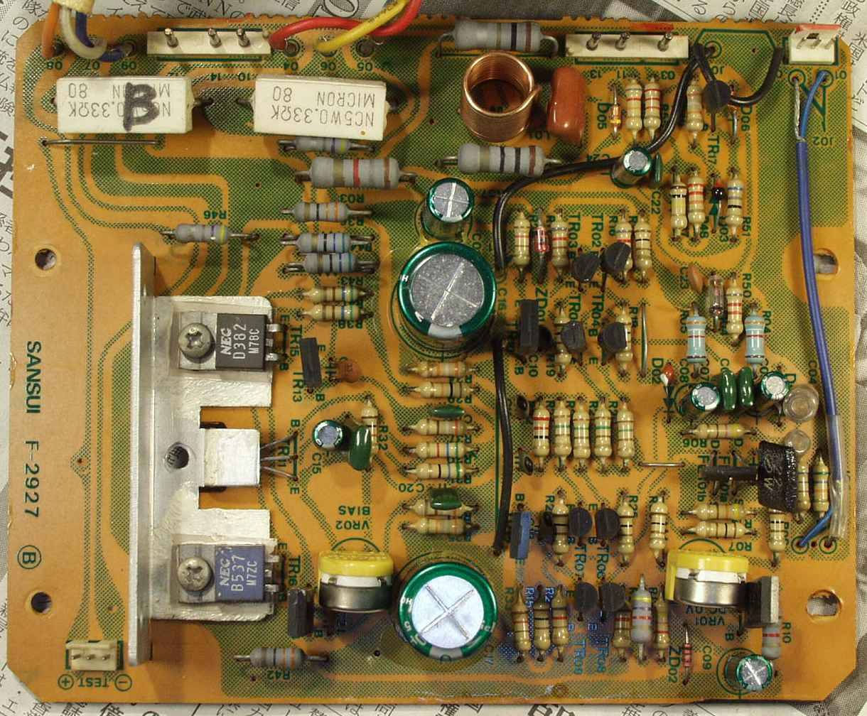 寸評 差し込み式SP端子を持つ初期タイプは基本回路自体は同じですが、使用されている電解コンデンサーの値が大きい