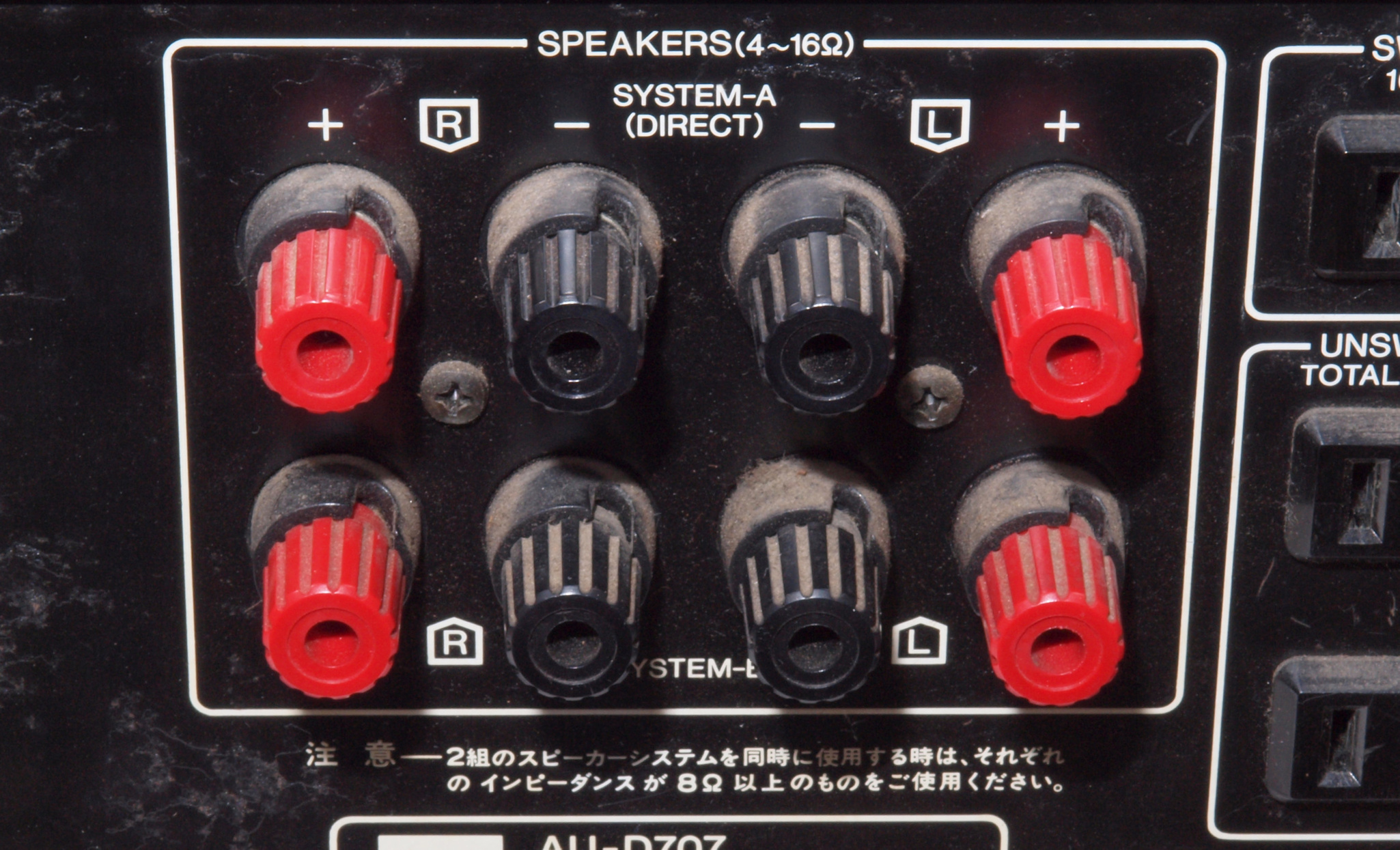 | A52. 点検中 SP接続端子。 裏側に基板があり、制約される。 取り付け穴(裏パネル穴)が大きいので、大型の端子しか使用不可。 中国製入線保護付金メッキ端子に交換可能。他WBTパーツ使用可能 フルテックパーツ使用可能。 | ||||||||||||||||||||||||||||||||||||||||||||||||||||||||||||||||||||||||