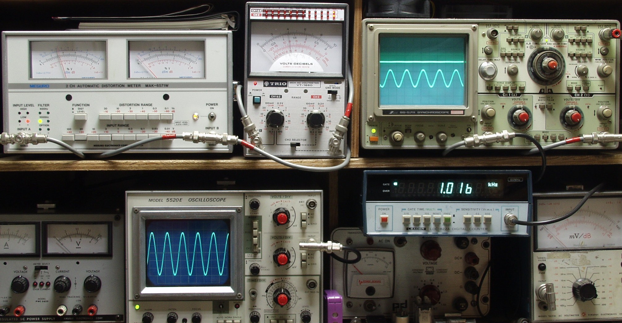上左オーディオ発振器より400HZ・1KHZの信号を出す(歪み率=約0.005%)