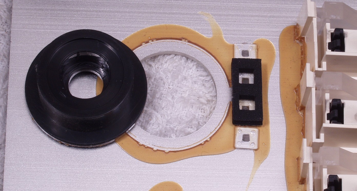 | C9A1. 修理前 SW基板 ヒンジを外すときツメを折り補修した後がある(交換するのがメーカー修理では!) | ||||||||||||||||||||||||||||||||||||||||||||||||||||||