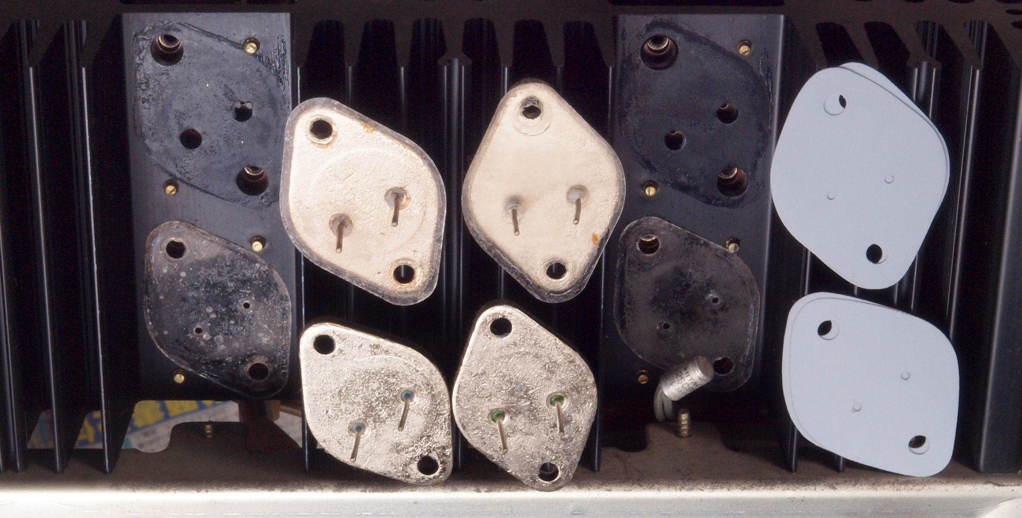 | C12. 修理中 R側 終段トランジスター。 熱でシリコングリスが流れ出し殆ど無い、テフロンシートに交換する。 | ||||||||||||||||||||||||||||||||||||||||||