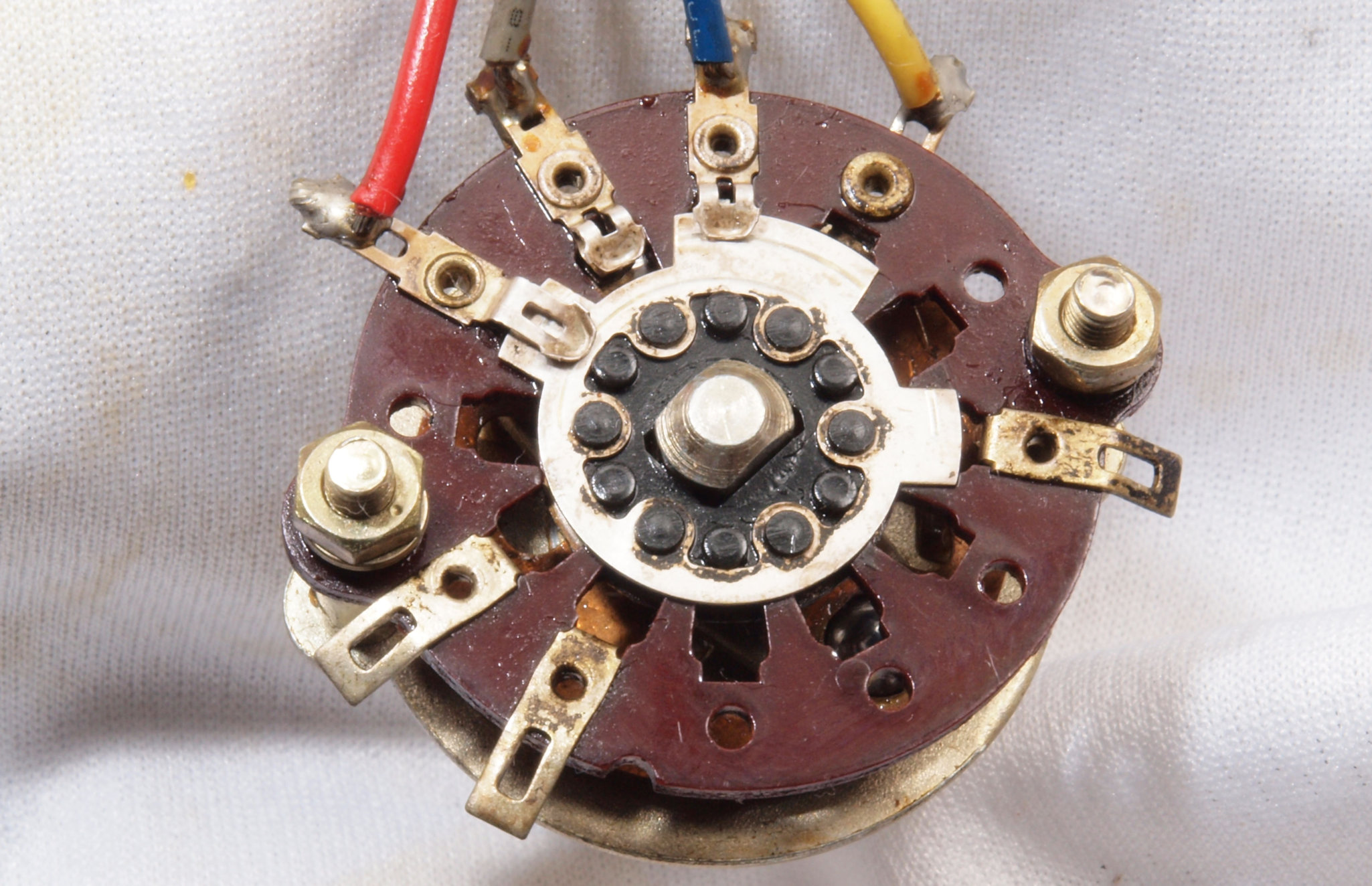 A63. 点検中 交換するテフロン絶縁製RCA端子。 中心電極は円筒状で4つ割方式。