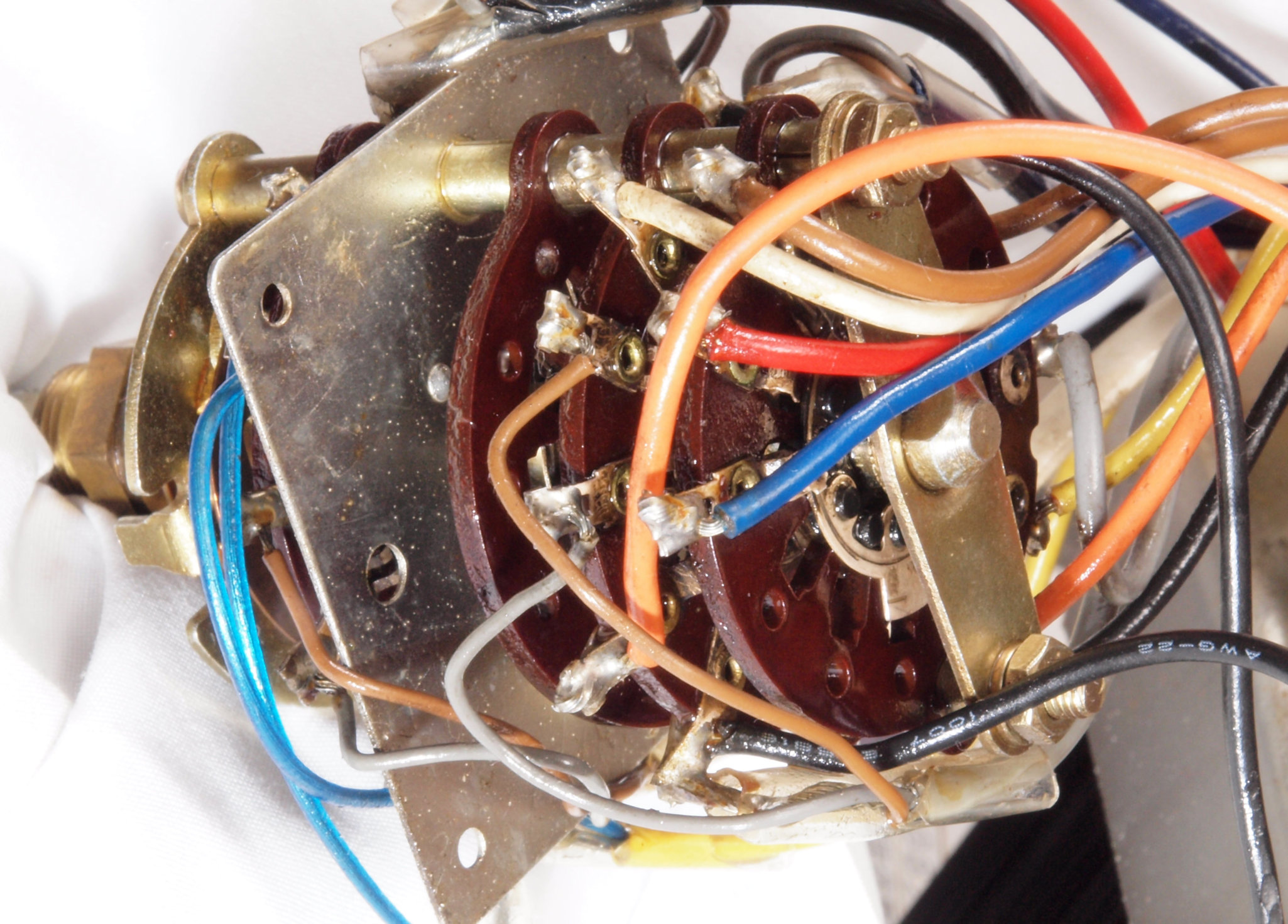 A55. 点検中 ユーザーが製作した電源SWへのコード接続、半田は上手い。