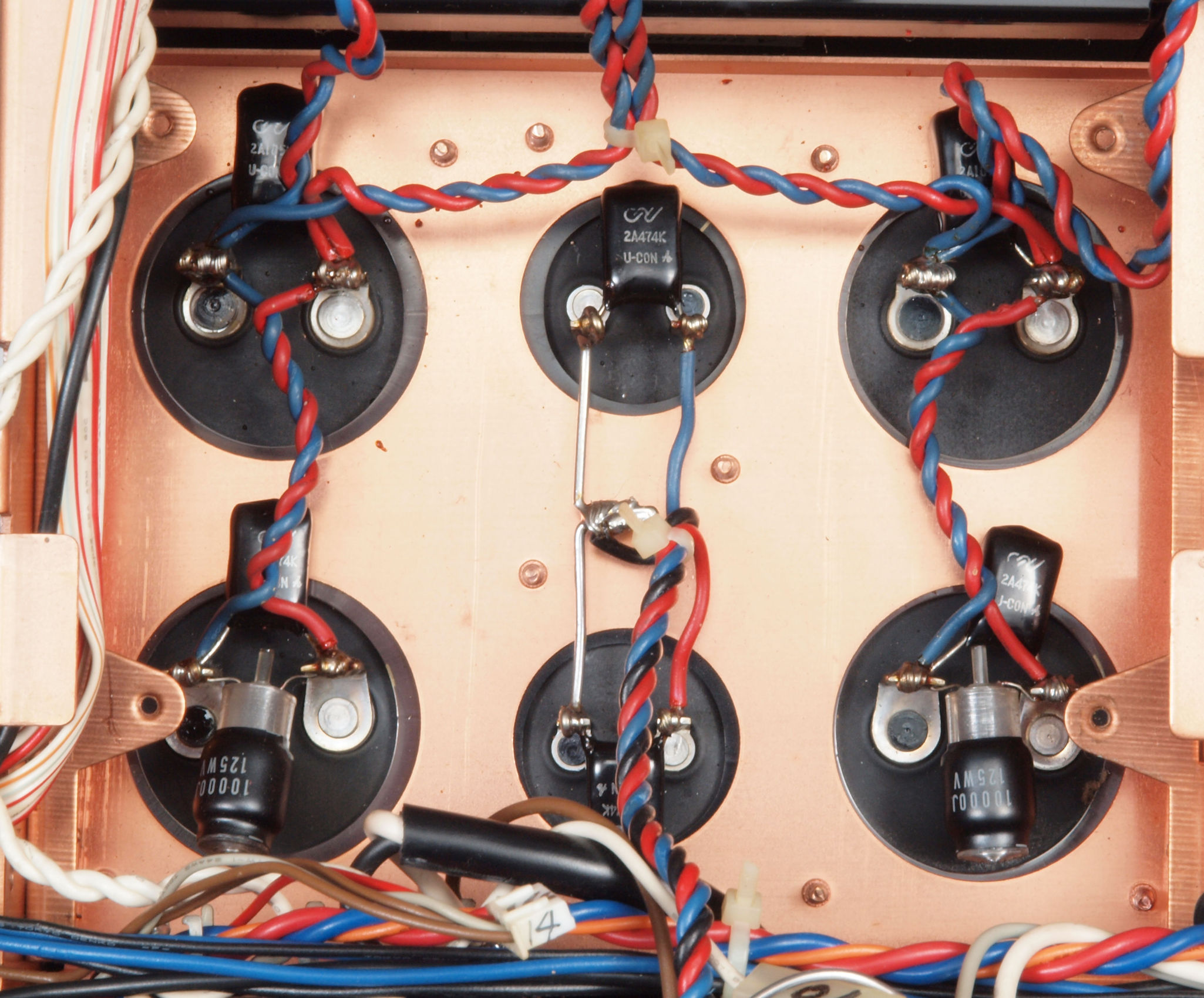 CL2. 修理後 大型電解コンデンサー、液漏れなし。フイルムコンデンサー4個追加。