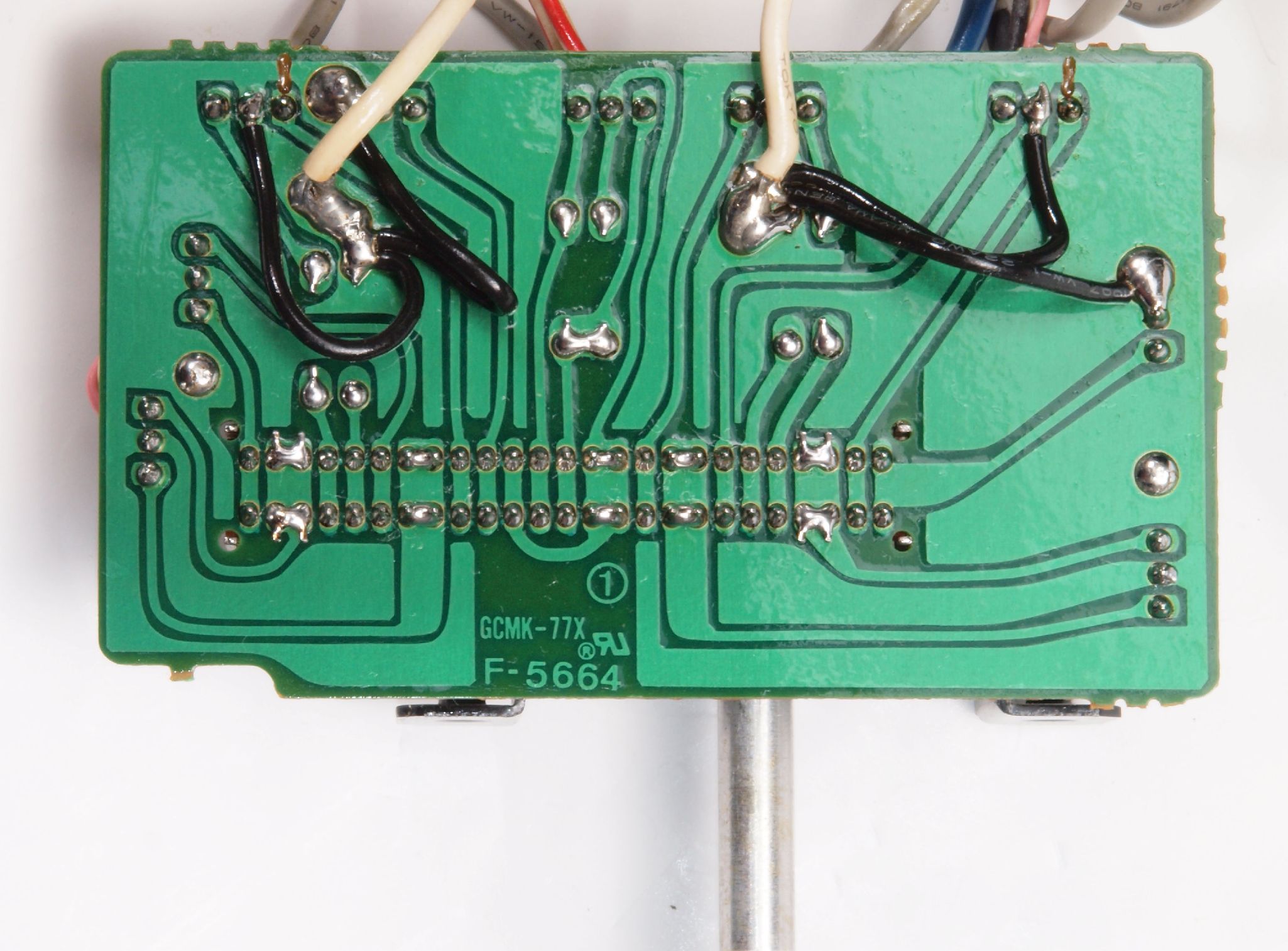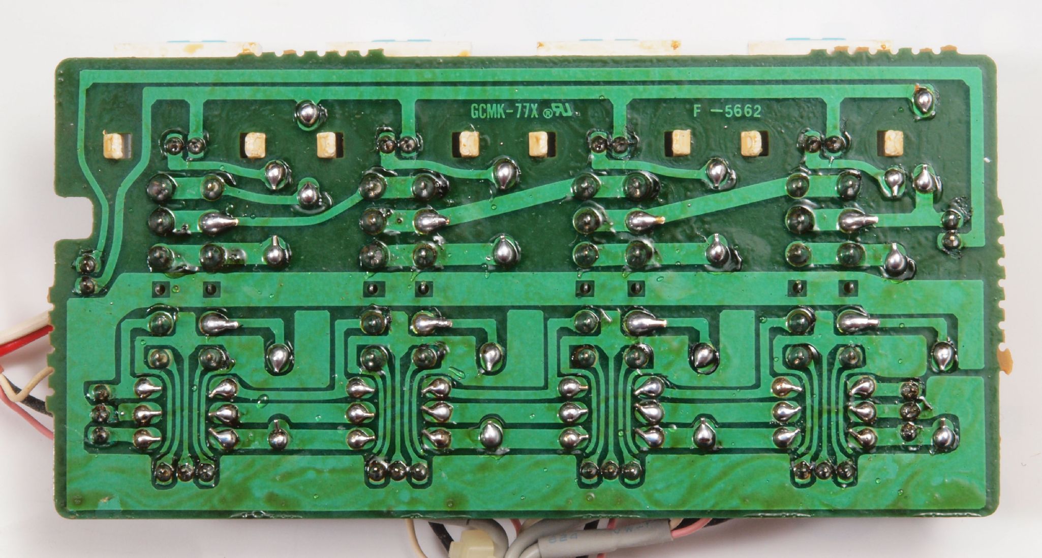C64. 修理(ハンダ補正)後 コントロール基板T裏  全ての半田をやり修す、セラミックコンデンサー2個追加。
