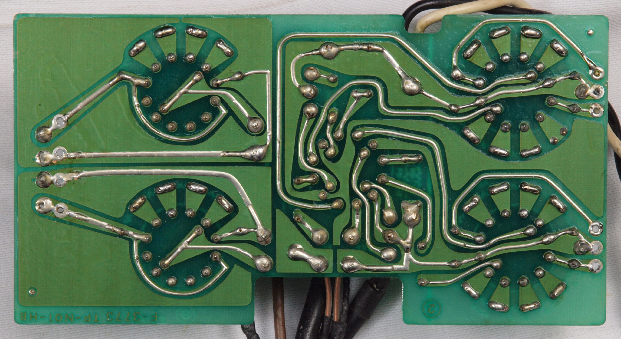 | C73. 修理(半田補正)後 電源表示LED基板裏・モードSW基板裏。 半田を全部やり直す。 | ||||||||||||||||||||||||||||||