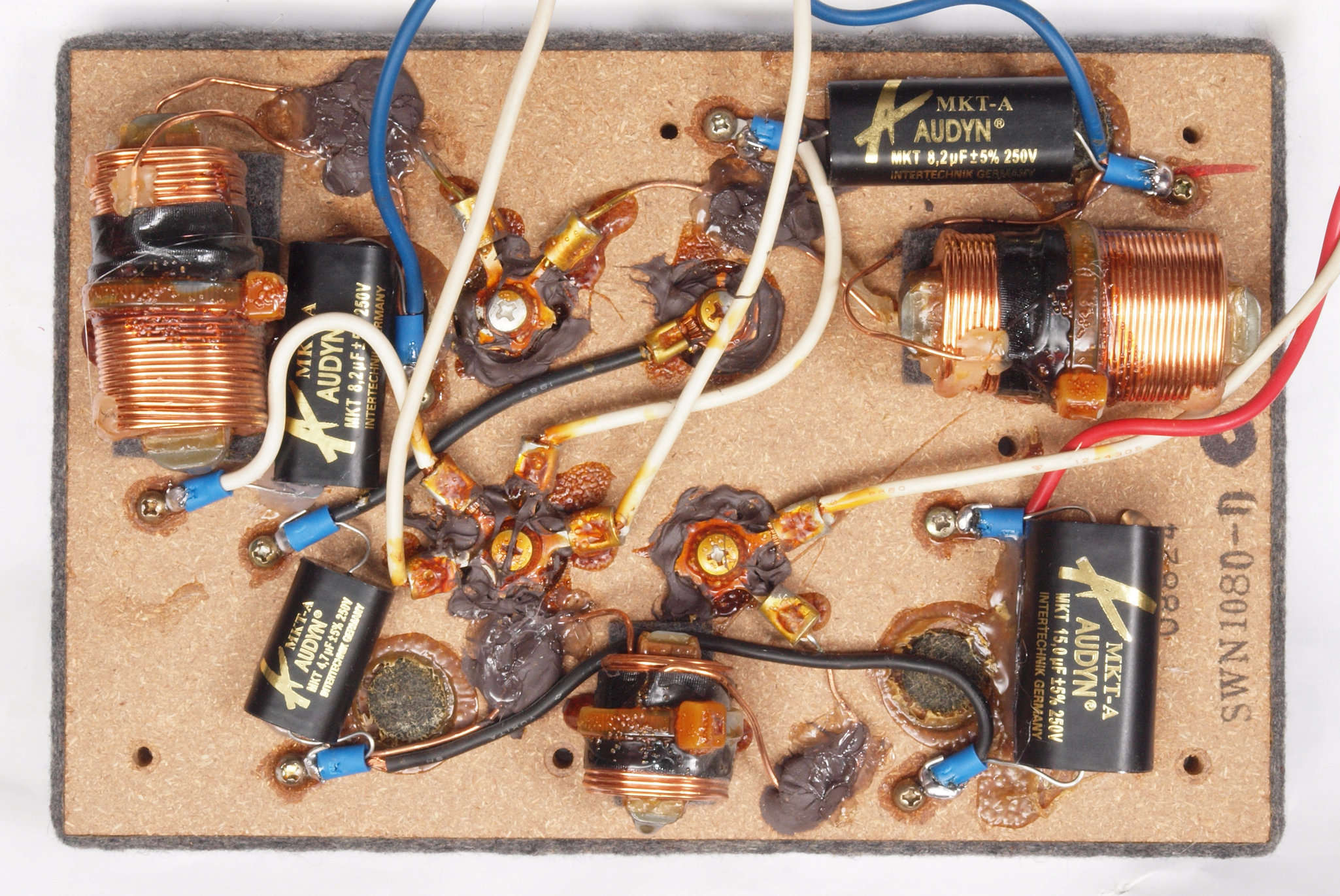 | C12. 修理中 ネットワーク1裏。 フイルムコンデンサー交換、配線を固定する。 | ||||||||||||||||||||