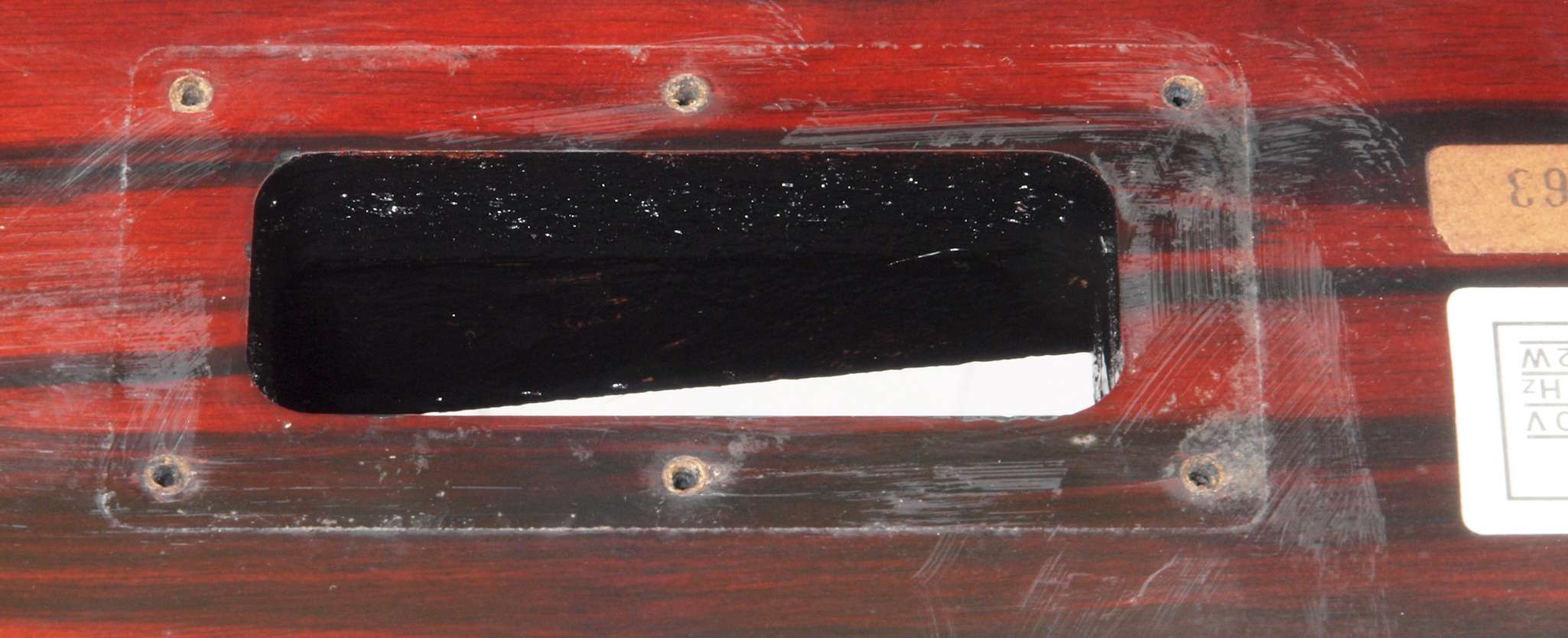 | W75. 修理前 電源ソケット、端子板取付け穴、反対側。 圧縮材にボンドを染みこませる、ネジ穴も塗る。 | ||||||||||||||||||||||||||||||||||||||||||||||||||||