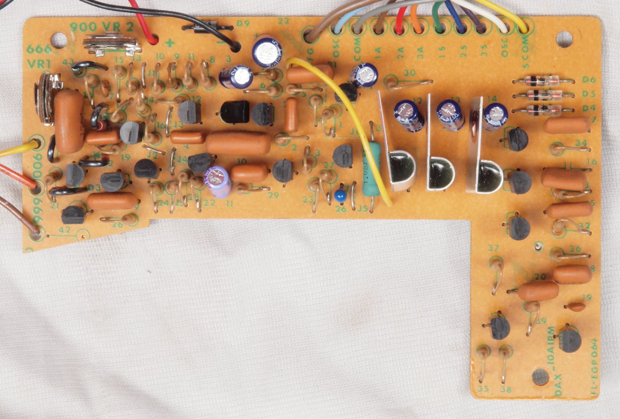 | C24. 修理後 電源・33/45切替基板 半固定VR1個、電解コンデンサー6個、製造中止で入手難のリレー1個交換 | ||||||||||||||||||||||||||||||||||||||||||||||||||||