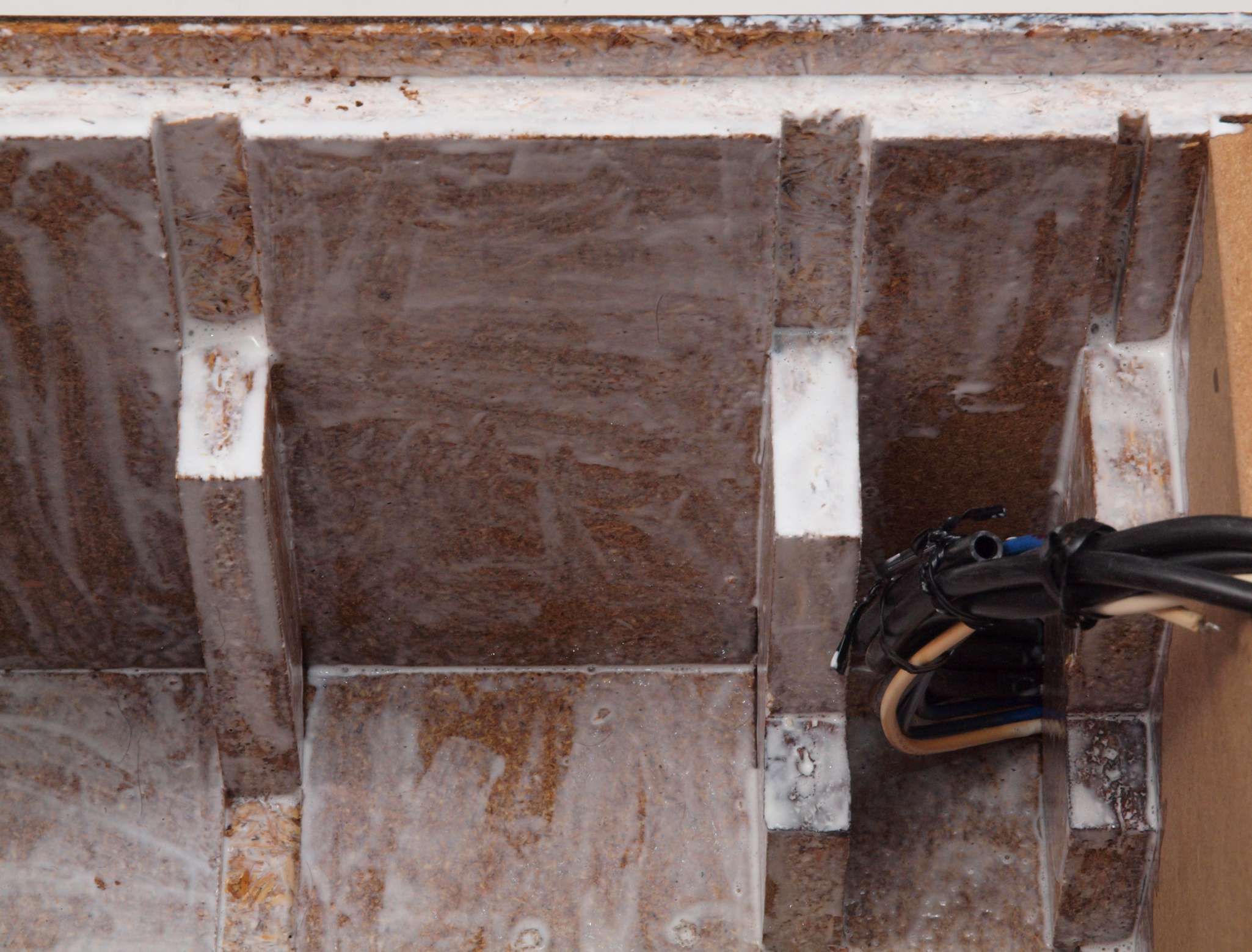 | C84. 修理中 下蓋(底板)裏右横側、ボンドを染みこませる。 | ||||||||||||