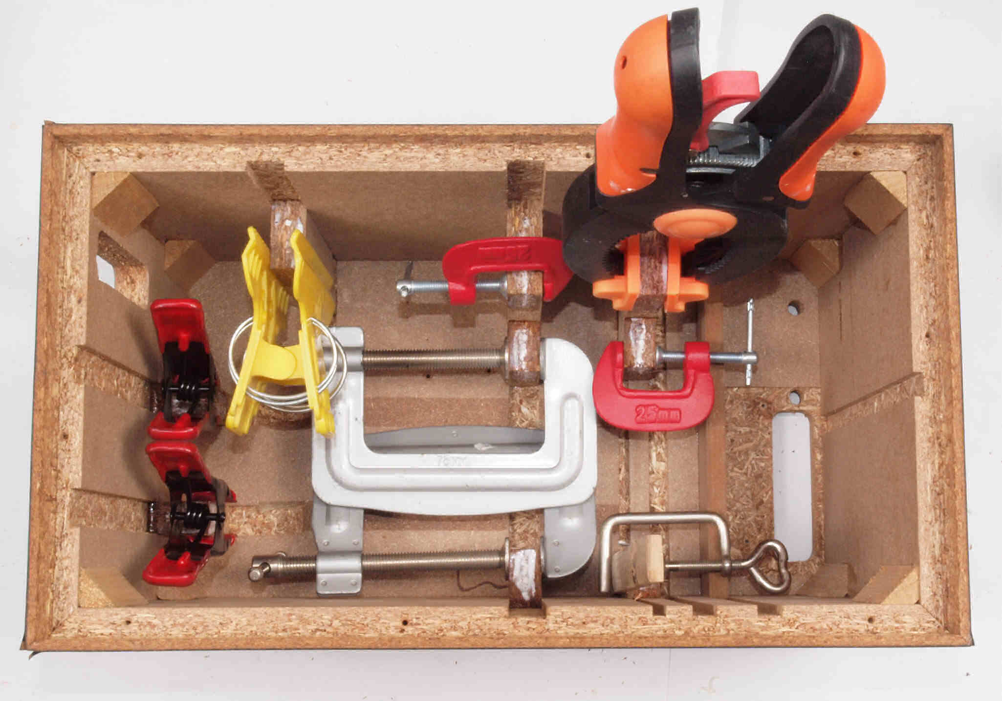 | C45. 修理中 接着材が劣化した木箱、下前右から見る。圧縮板にボンドを塗って固めている。 | ||||||||||||